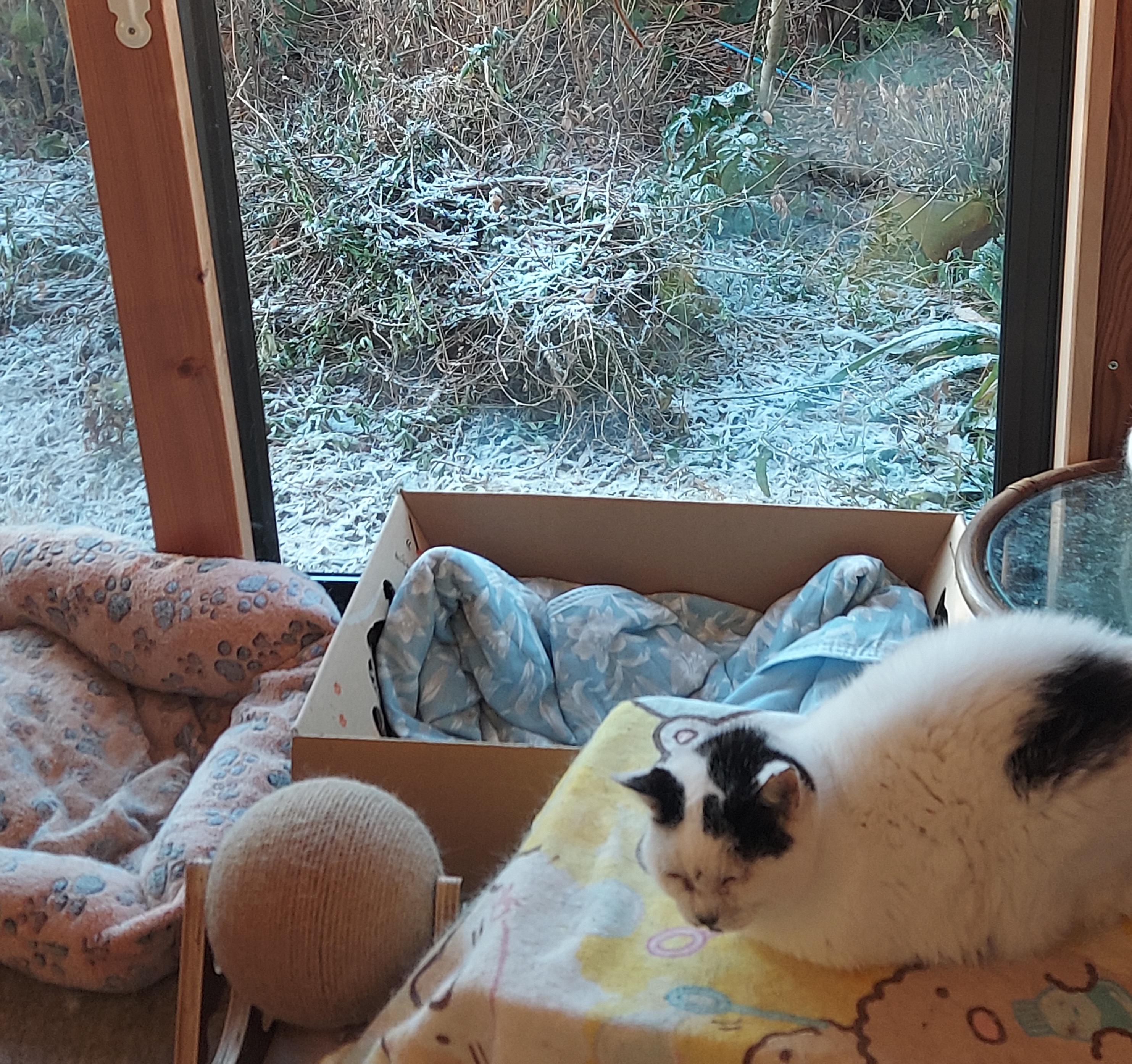 今朝は寒さが厳しく、雨戸を開けるのに力がいりました。