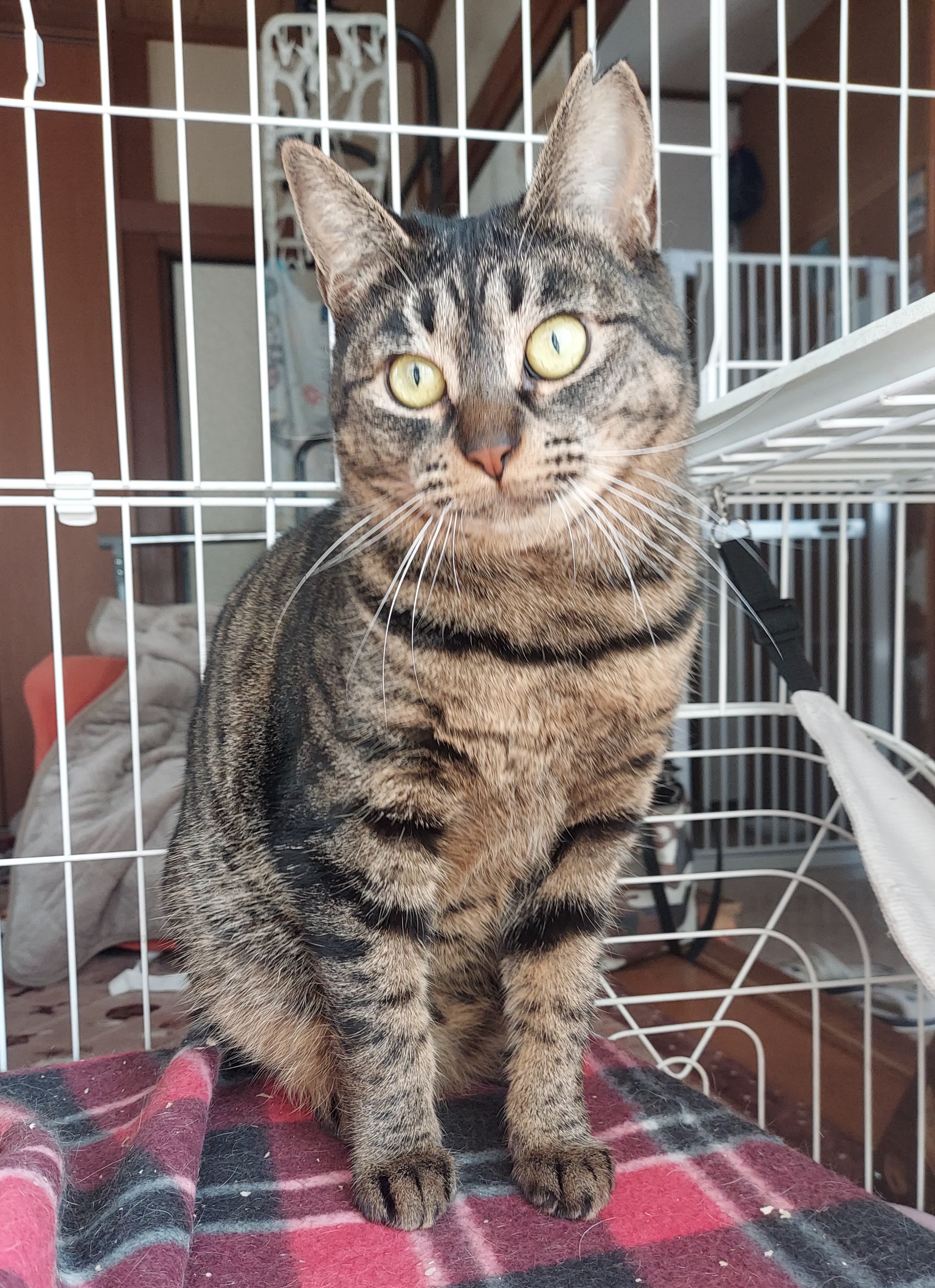 ケージは子猫なら小さめな予備ので大丈夫かと考えていましたが、こんなに立派な体格では小さすぎる~!