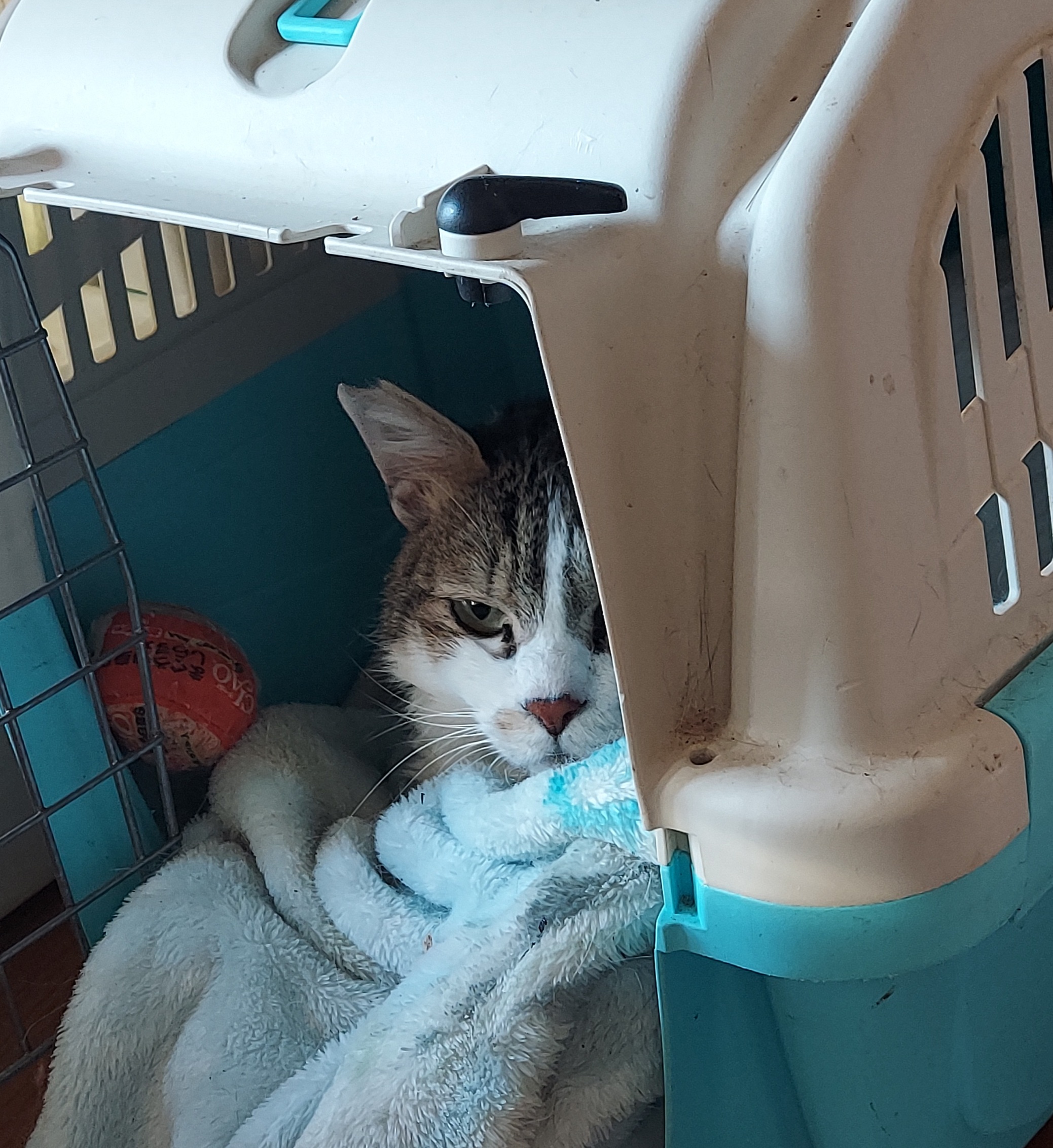 パウチやチュールを開けるぴちっという音にも反応してちょうだいちょうだいしていたのに、姿も見せずキャリーに引きこもっていました。