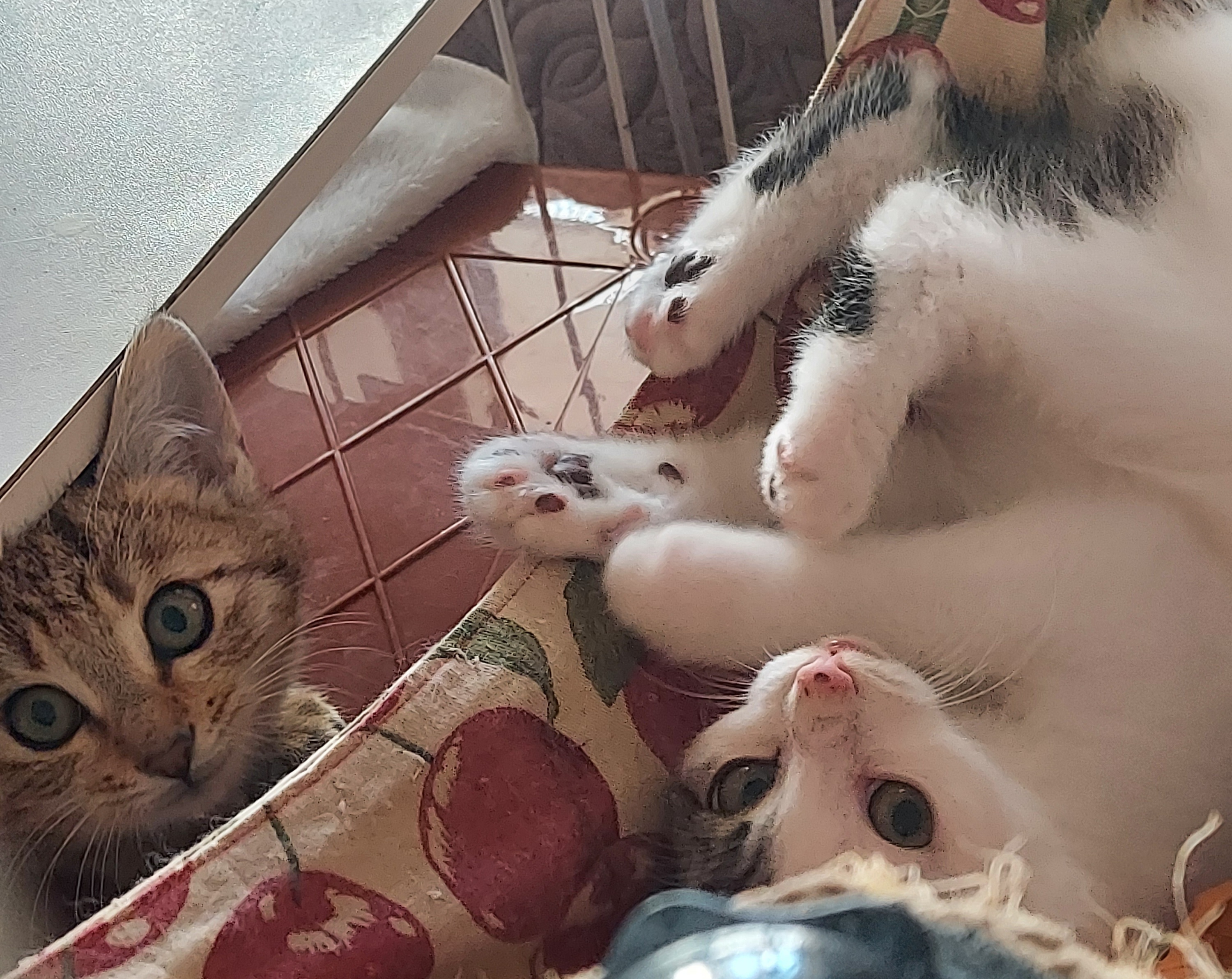 さて保護した子猫たちは徐々に家猫生活に馴染みつつあり、ご飯もしっかり食べておねだりしています。
