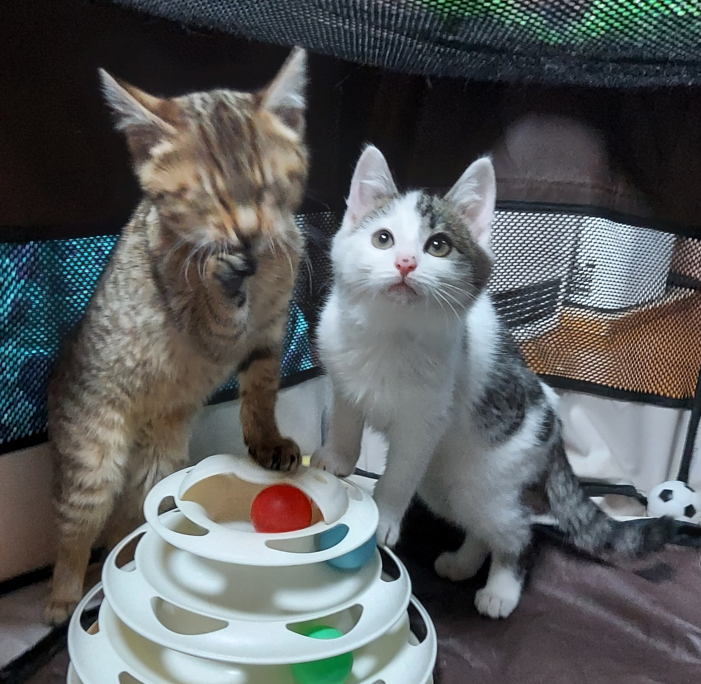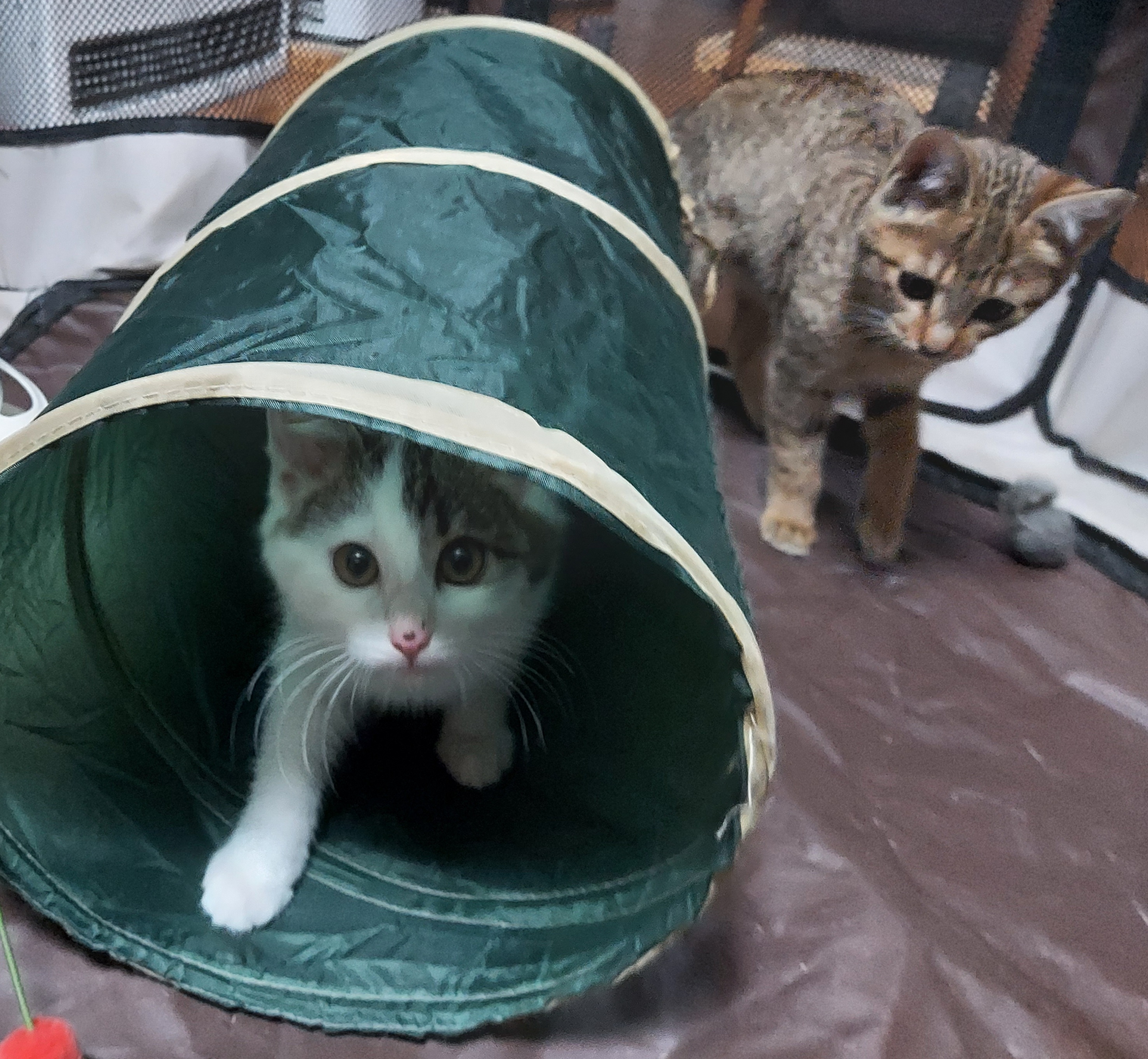 少しづつ成長している子猫たち、運命の赤い糸、赤い綱を手繰り寄せて巣立って行けますように!!