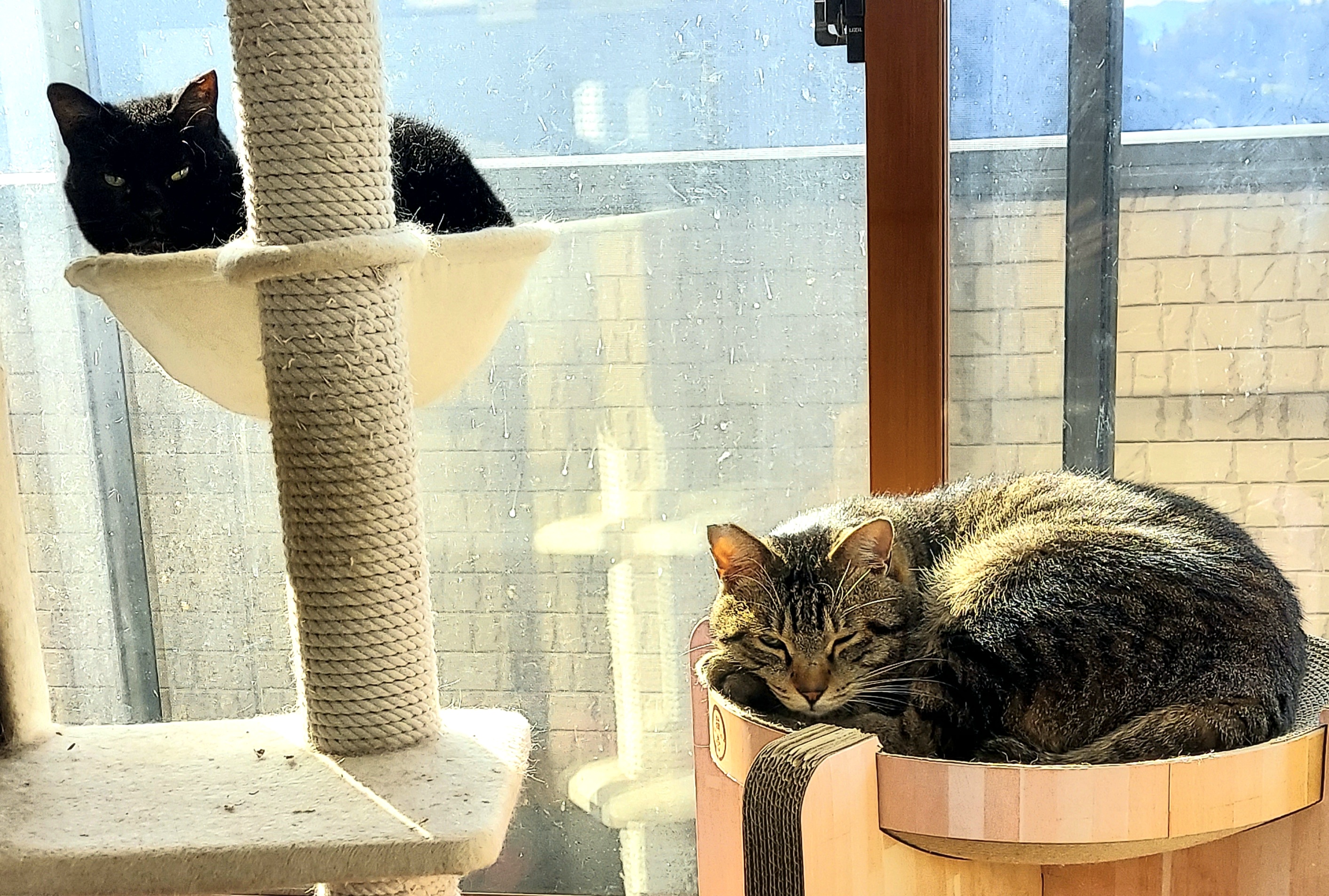 のんちゃんやなるちゃんも窓辺で日を浴びていましたよ!