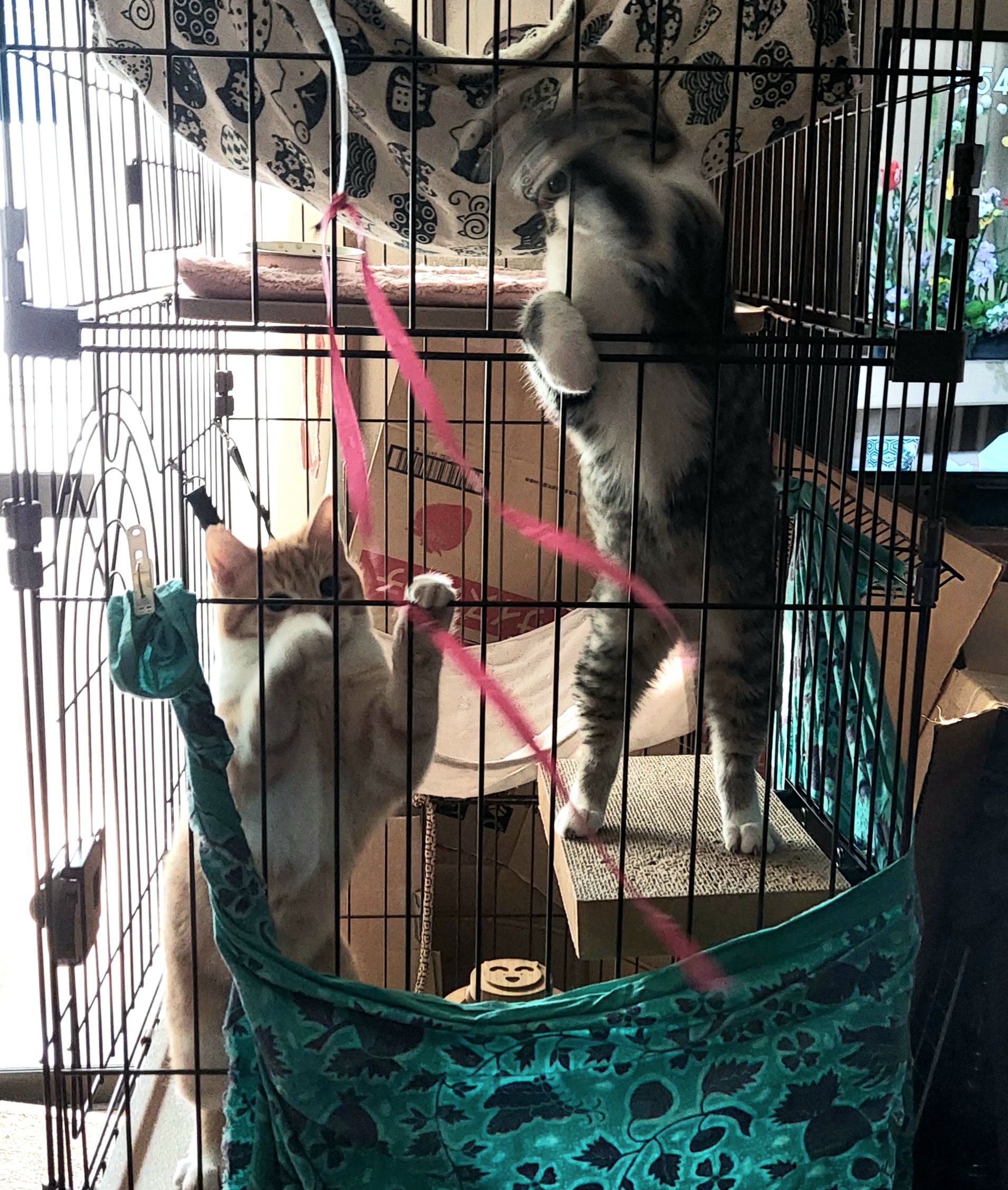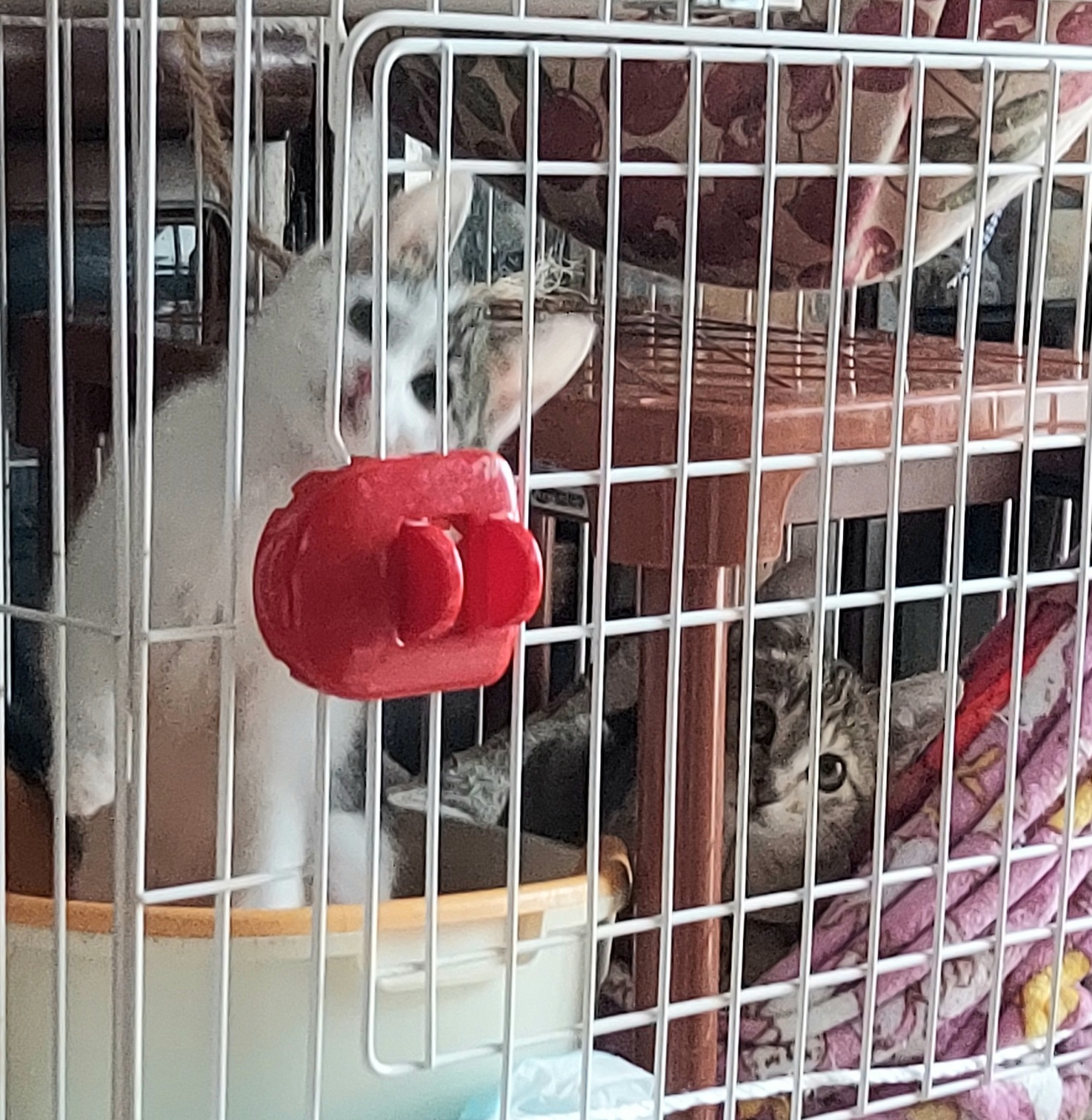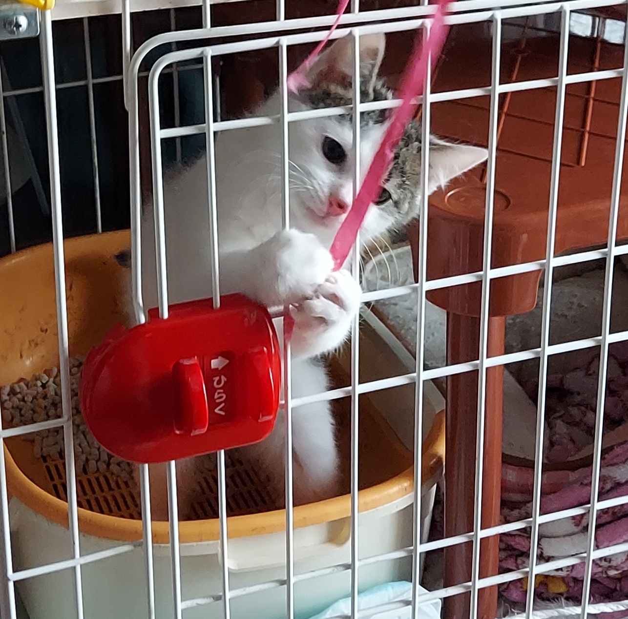 ケージ暮しの子猫は退屈、退屈!!