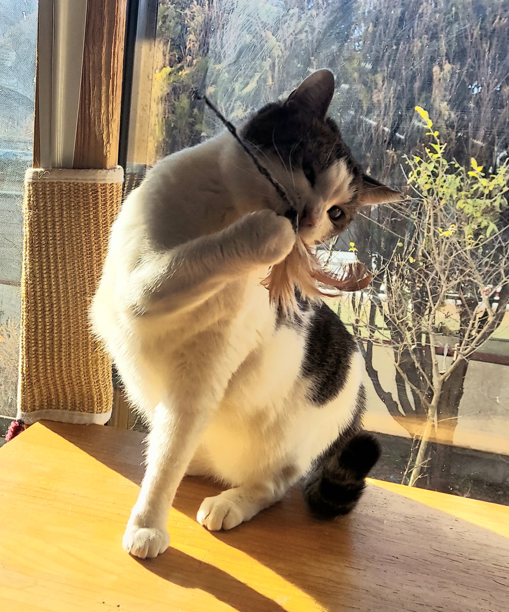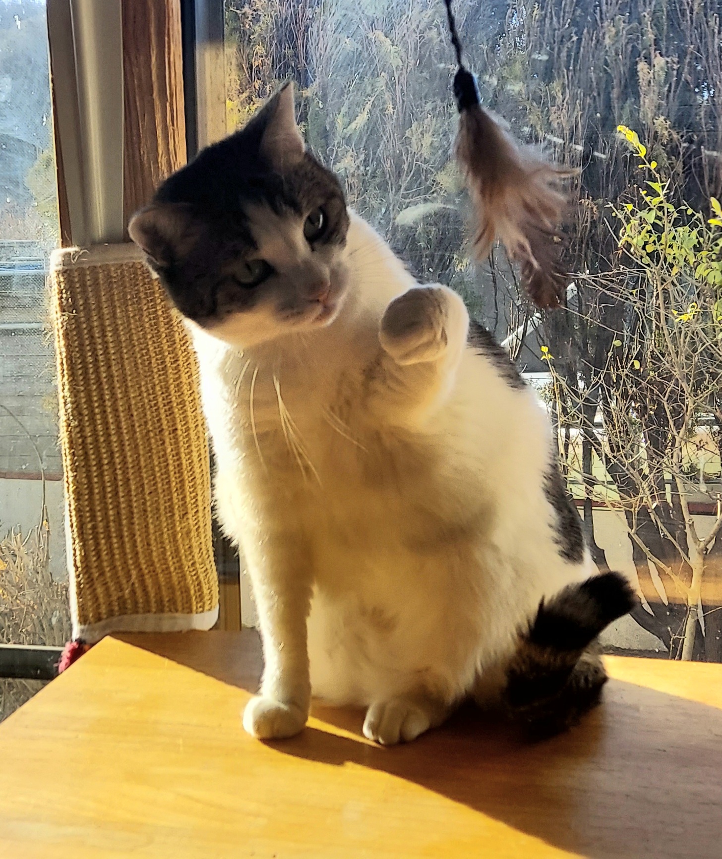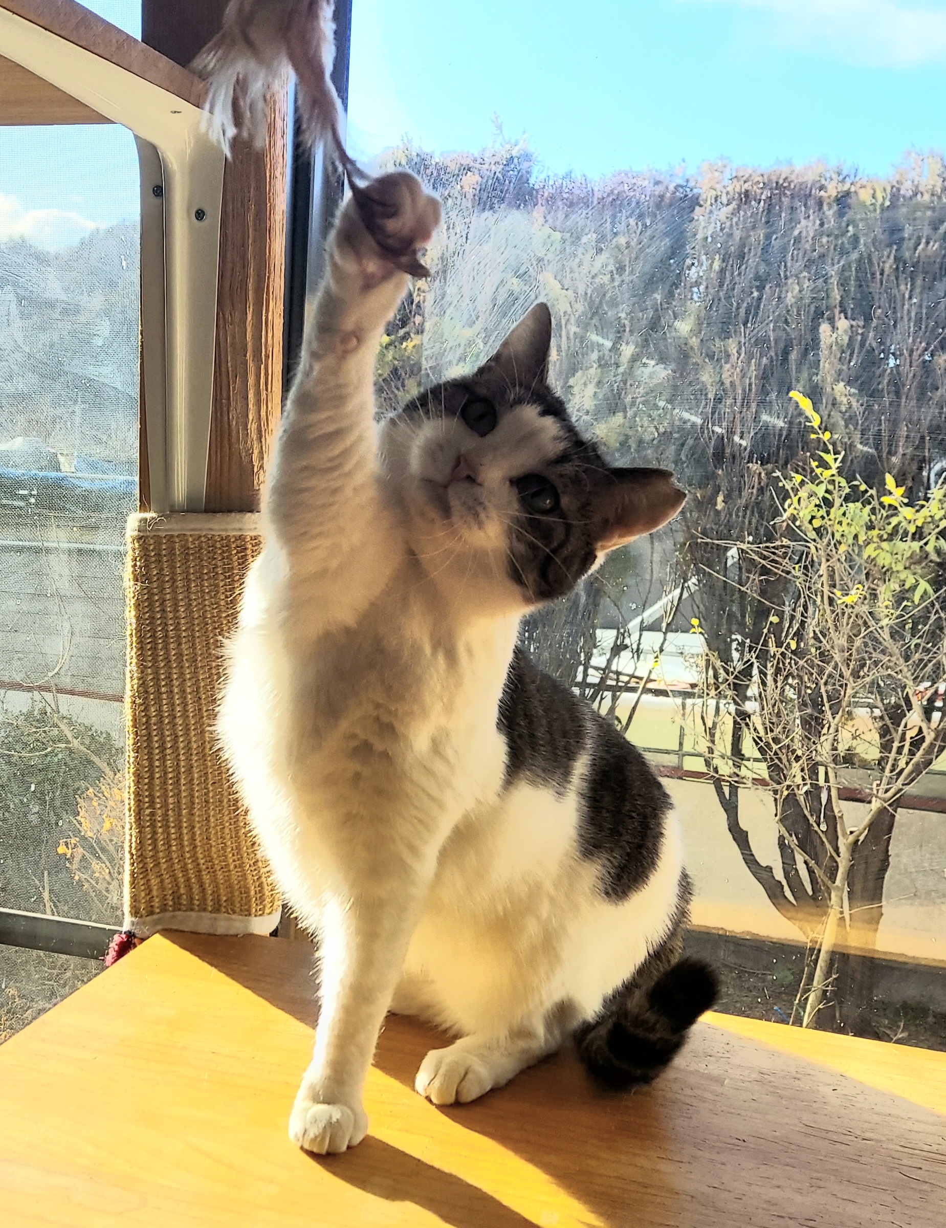最初は「私はそんなもんにはじゃれませんよ」って感じだったのに、むずむずして遂に手が出ました(笑)