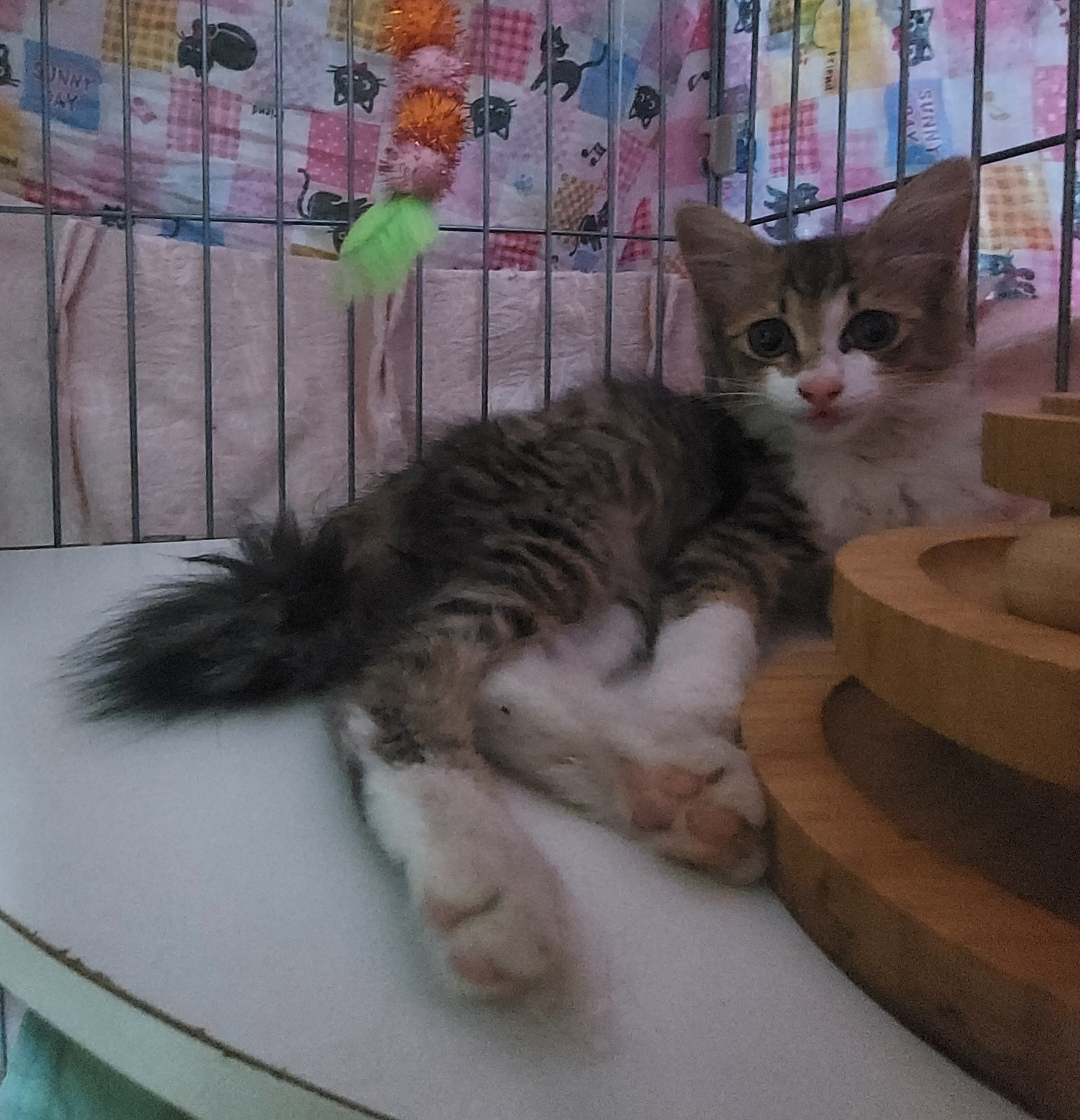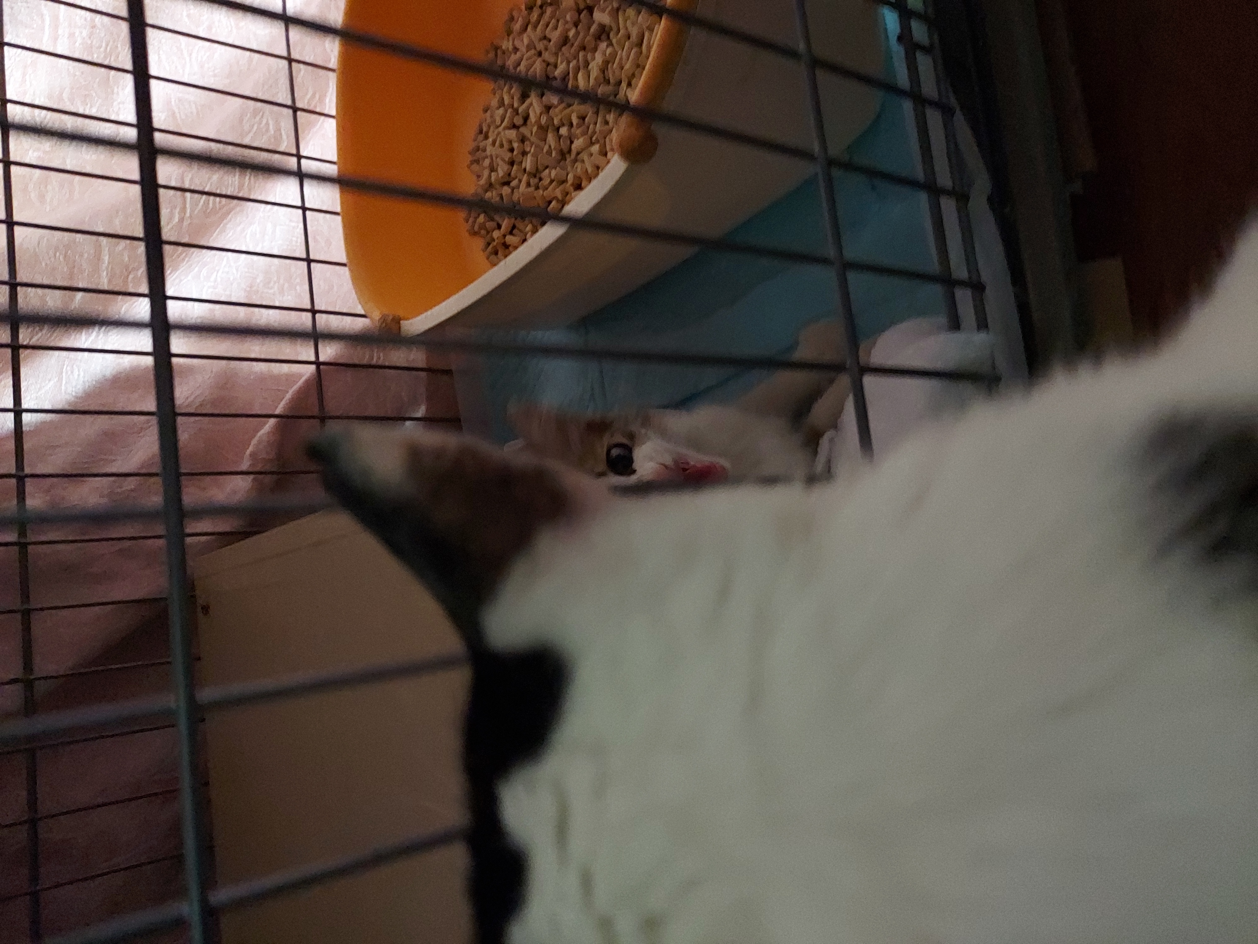 この子、ケージに入れたらすぐにゴロゴロ音が聞こえ、ふわふわタオルにフミフミしていました❤️