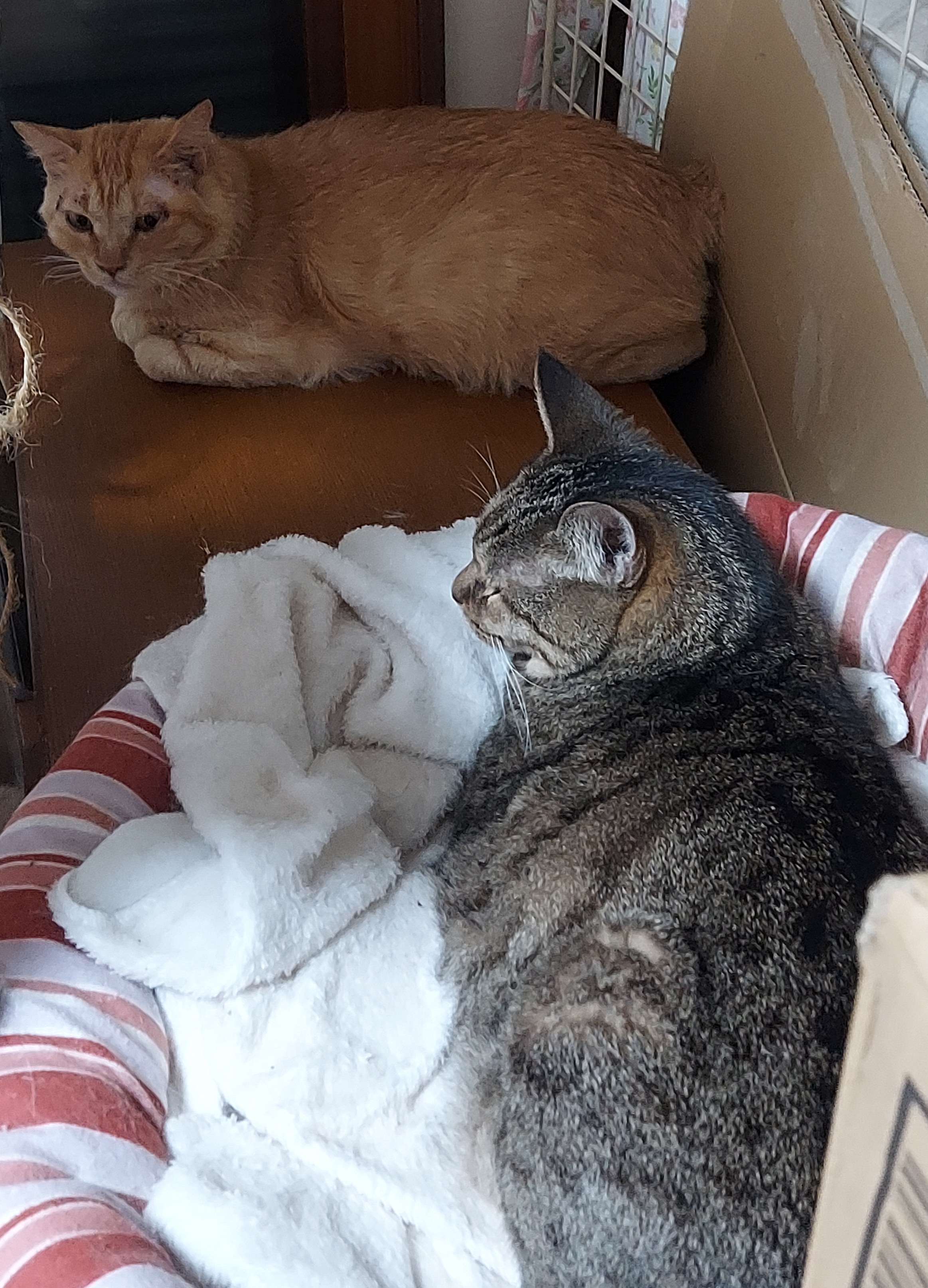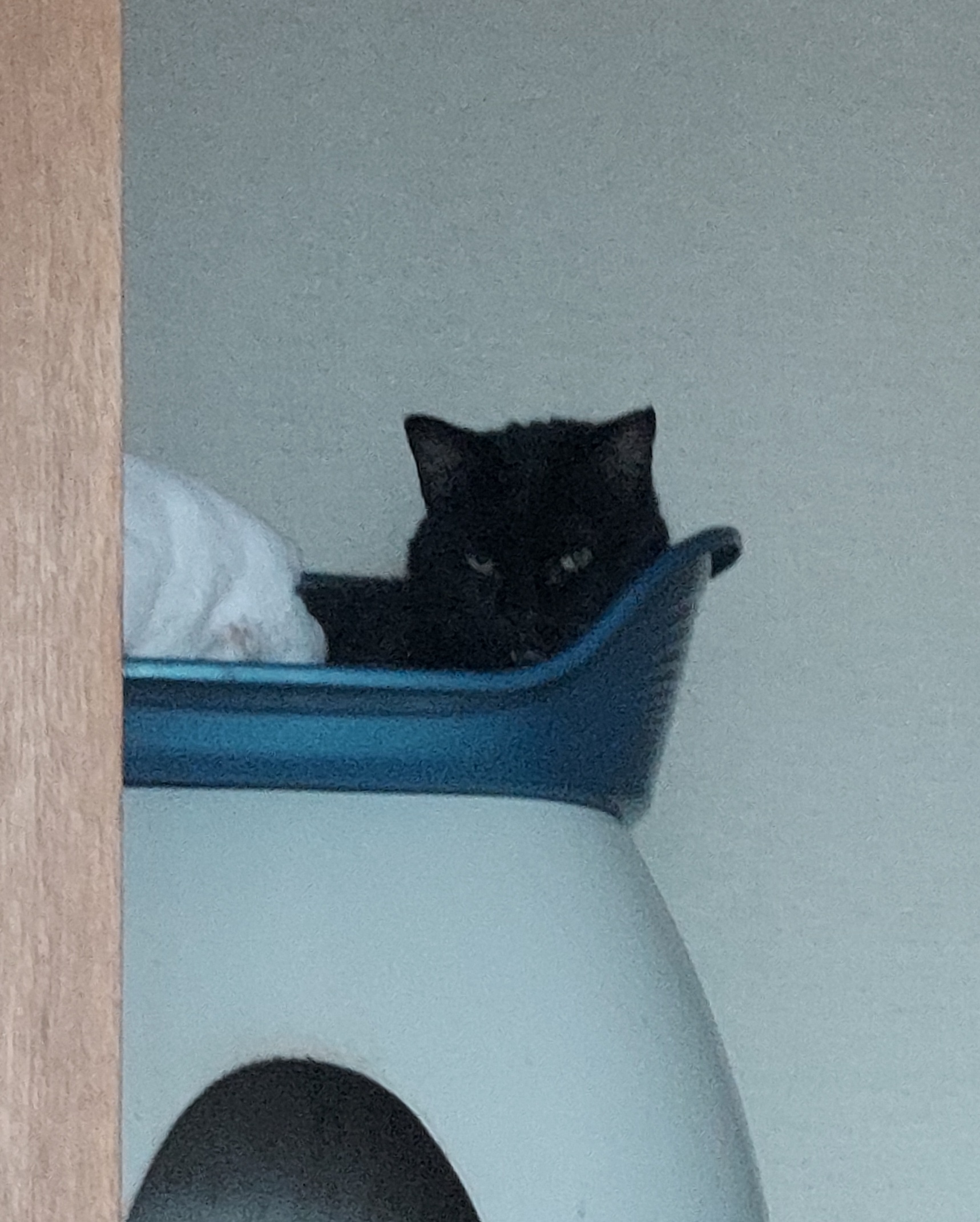 おっ、こぶしはランクアップして猫ベッドにいますよ