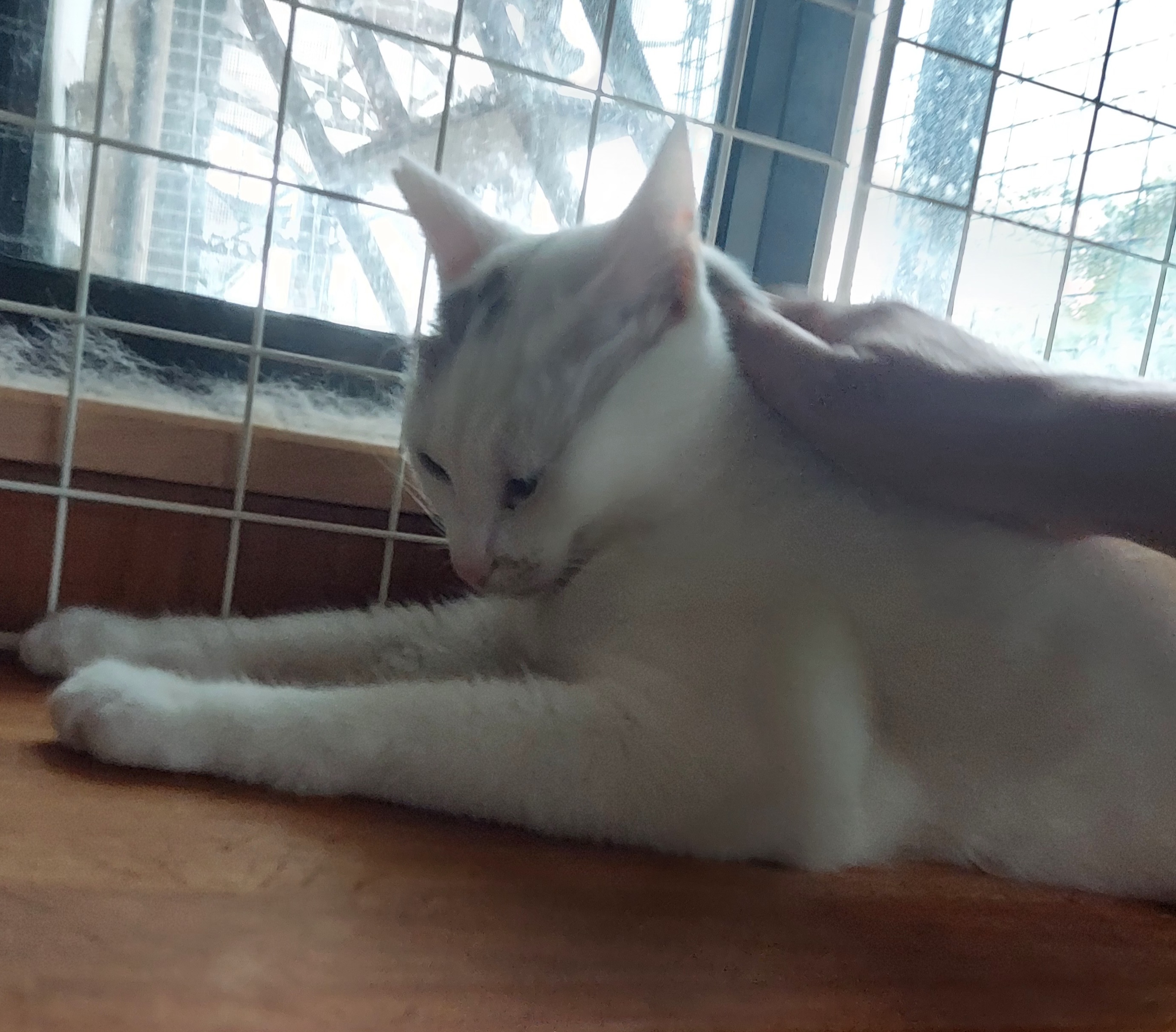 保護猫部屋の窓越しにシルエットが映ります。