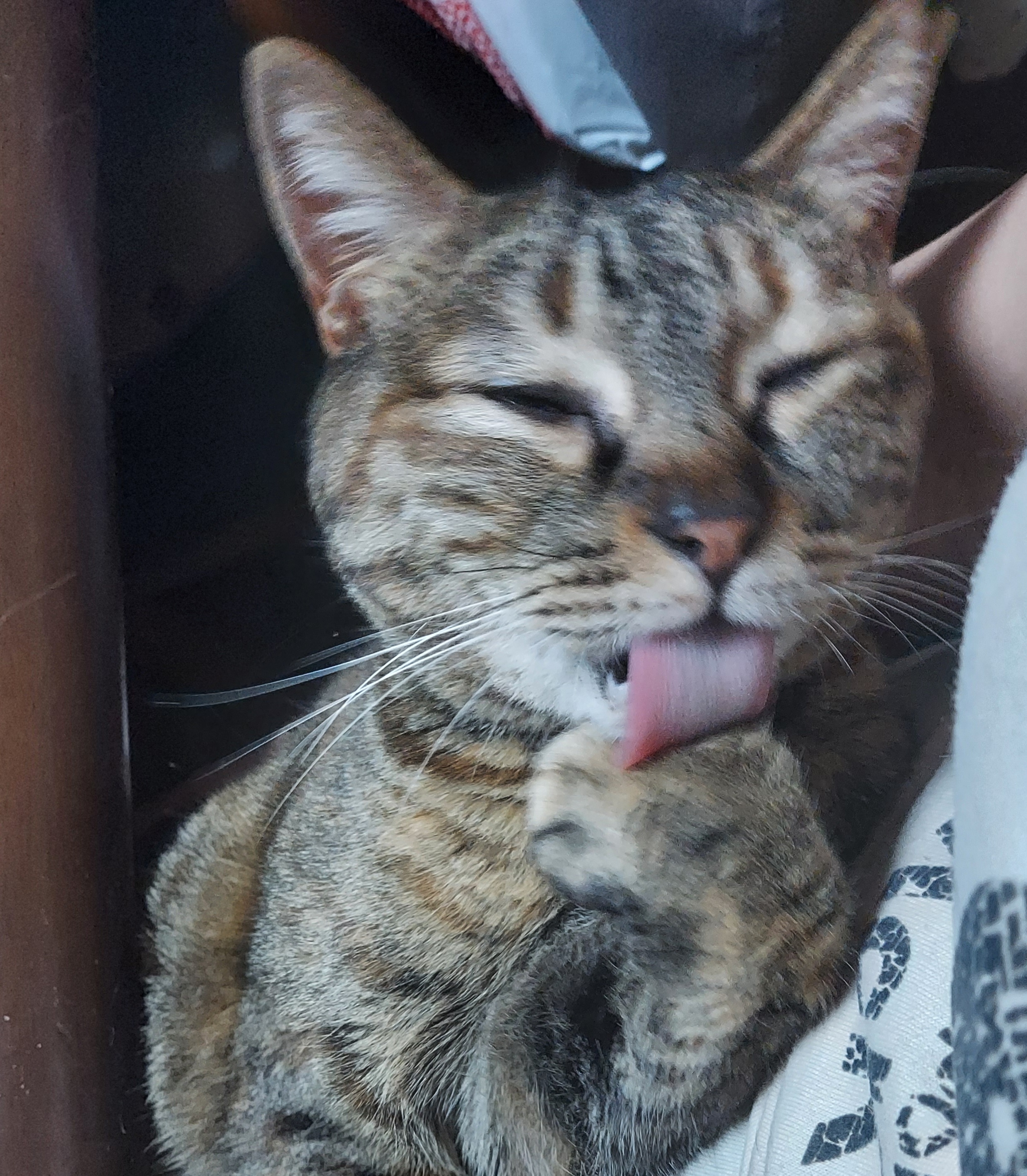 でものんちゃんが膝にきて、うんちく垂れるかのようなお顔で自分をペロペロ。