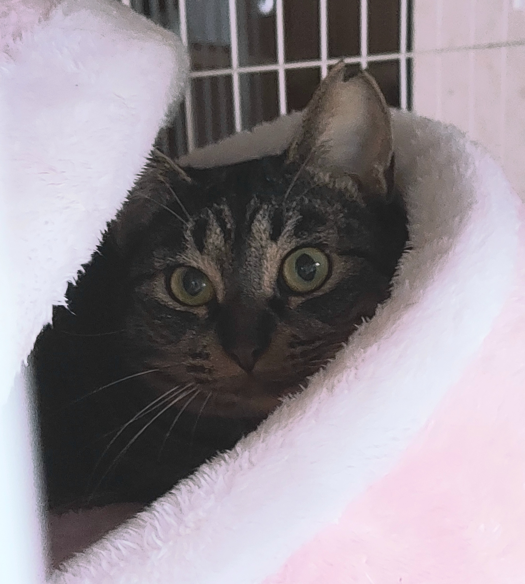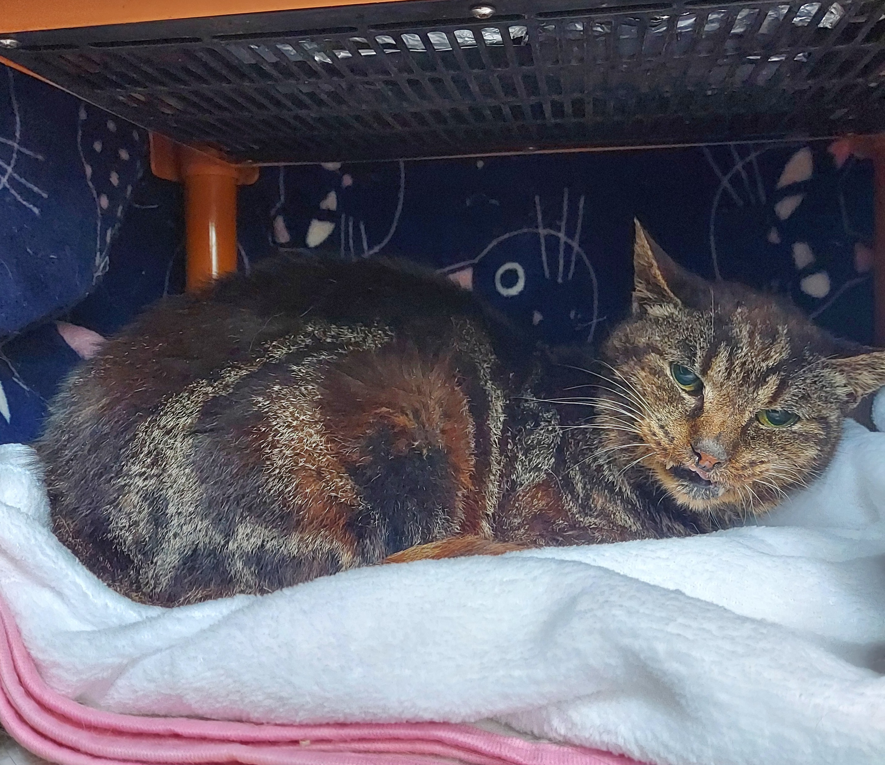 茶とらくんの餌やりさんのアパートの部屋に入り込み布団で寝るという痩せこけたキジトラさんを餌やりさんが捕まえてくれました。