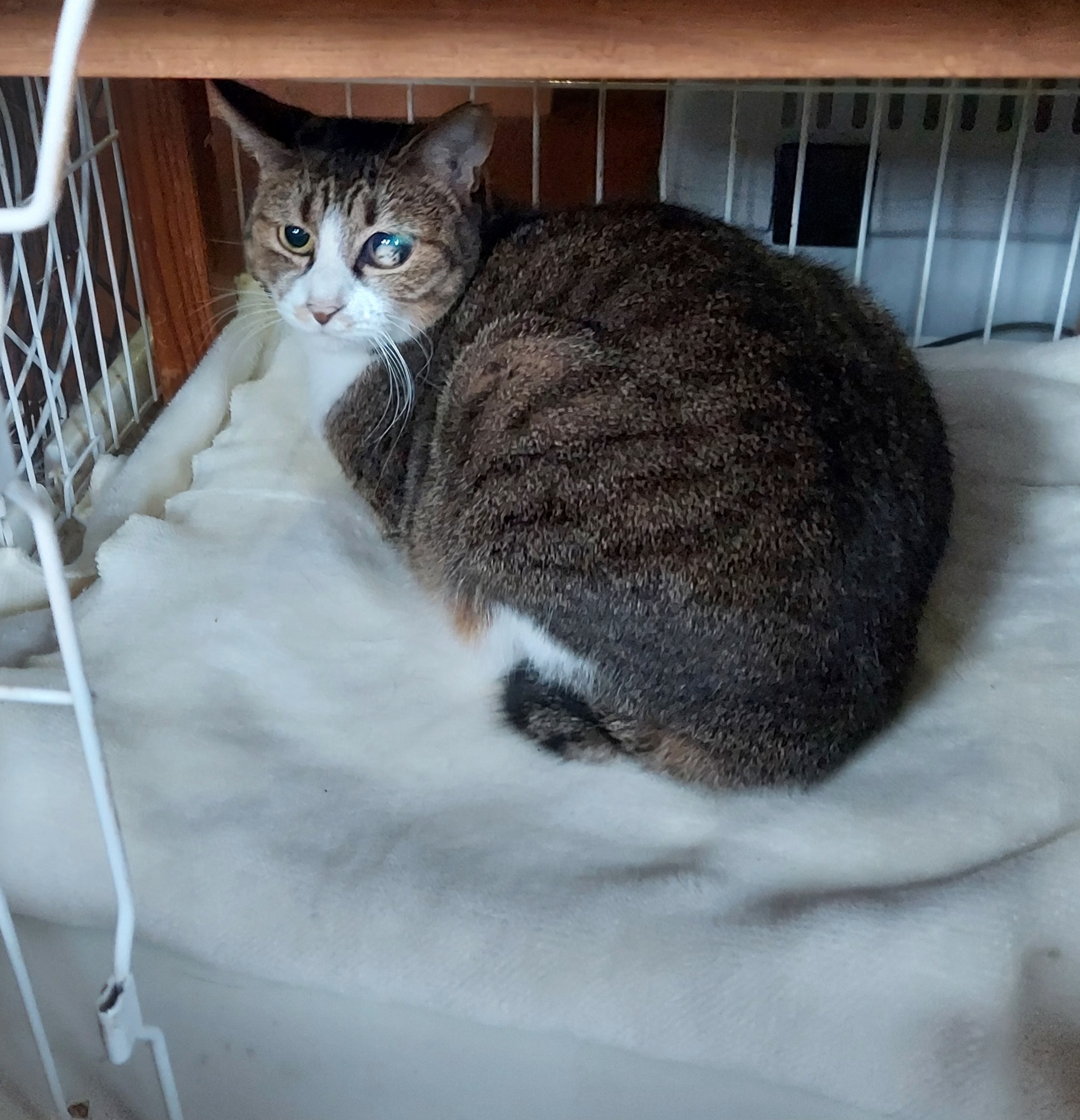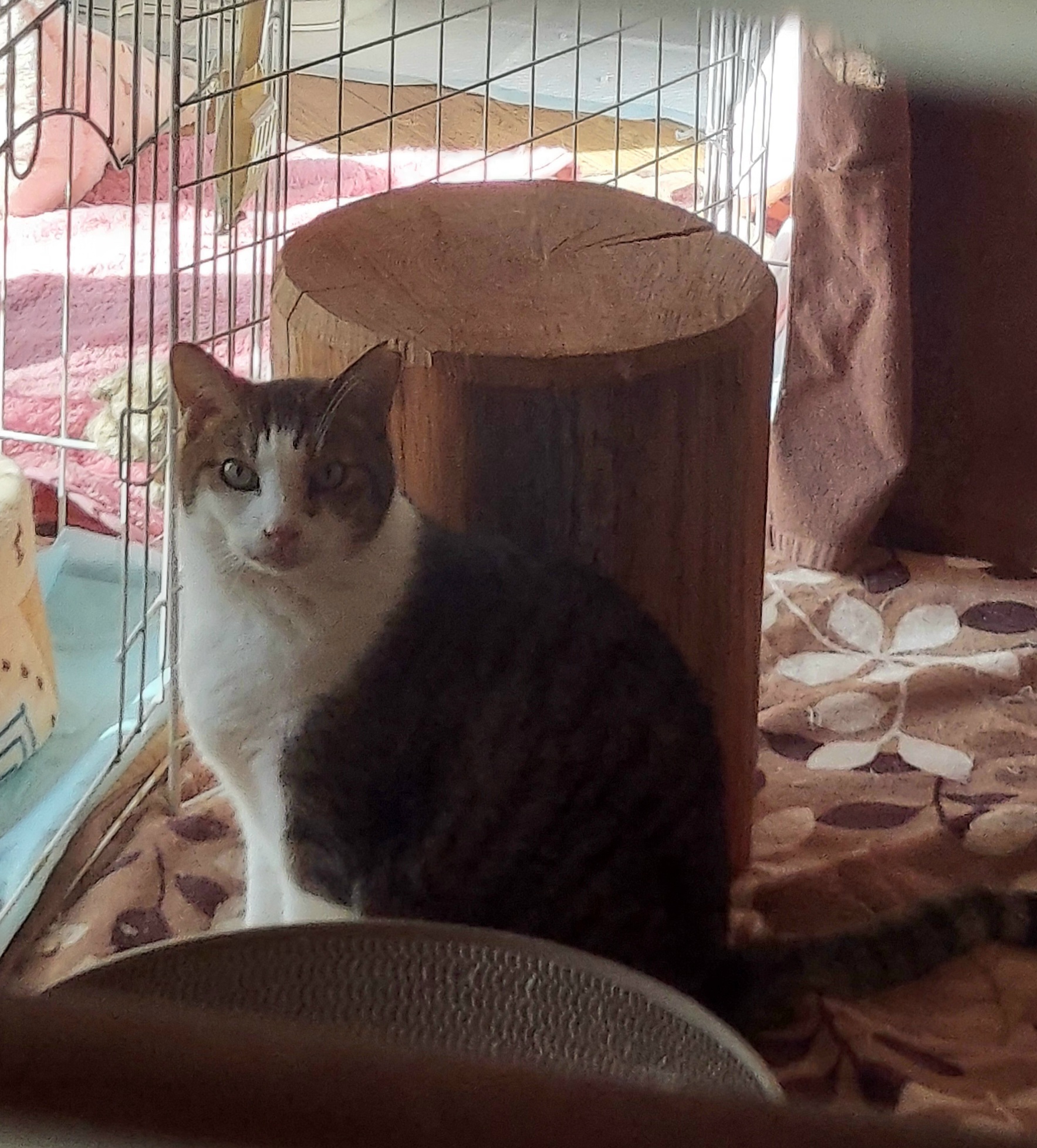いろはさん、昨日退院し向こうの家の2階、コウちゃん、美鈴さん、太一にふうすけのいる部屋の一角に置いた平ケージで過ごしています。