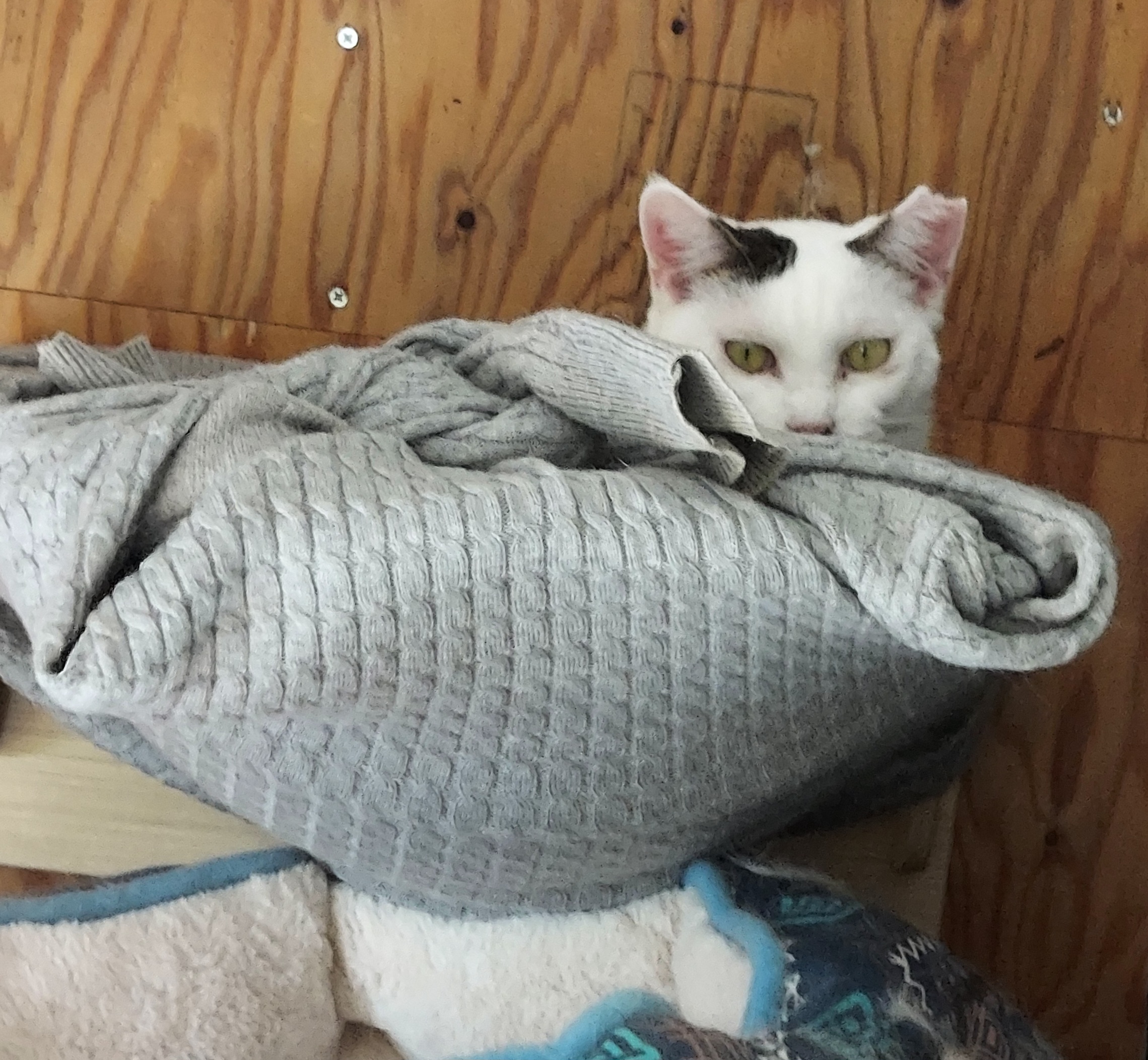 古いセーターもネコ毛まみれでクタクタになれば捨てやすいし!