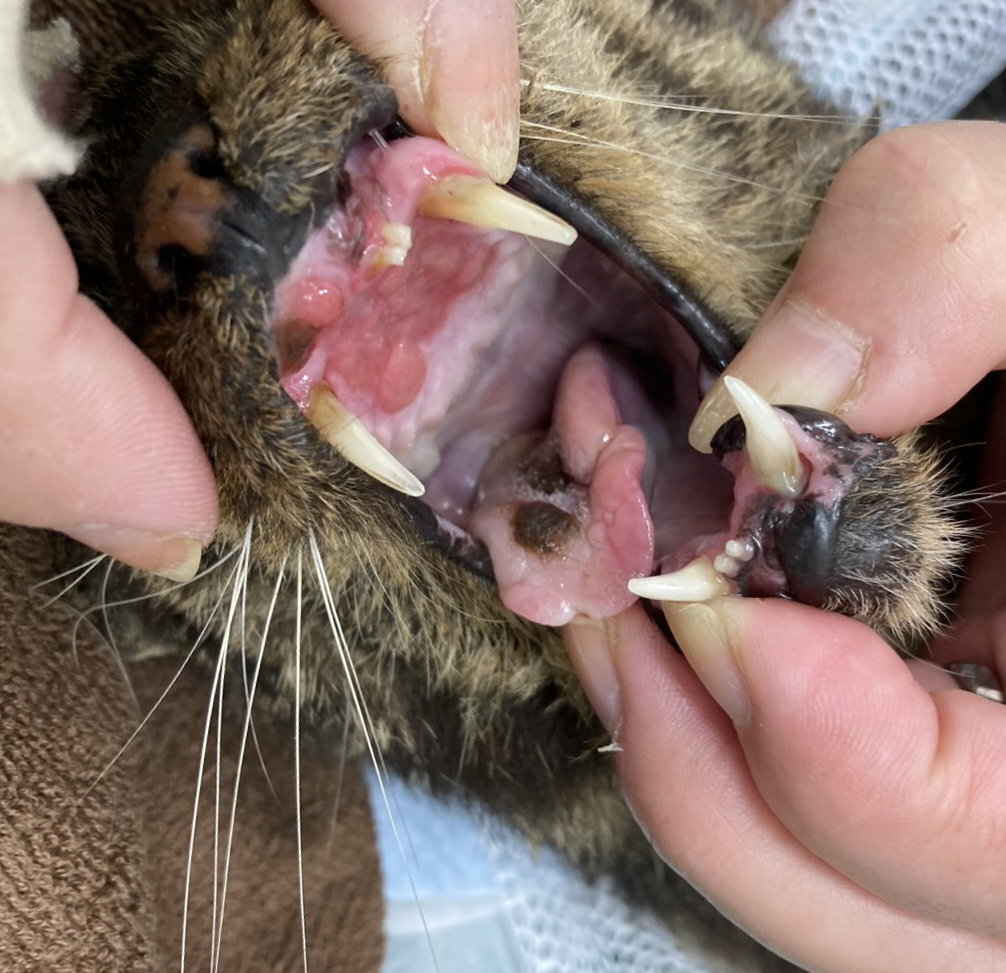 あまりすぴすぴしているので、再度口の中をよく見ると腫瘍のようなものがあるそうです。