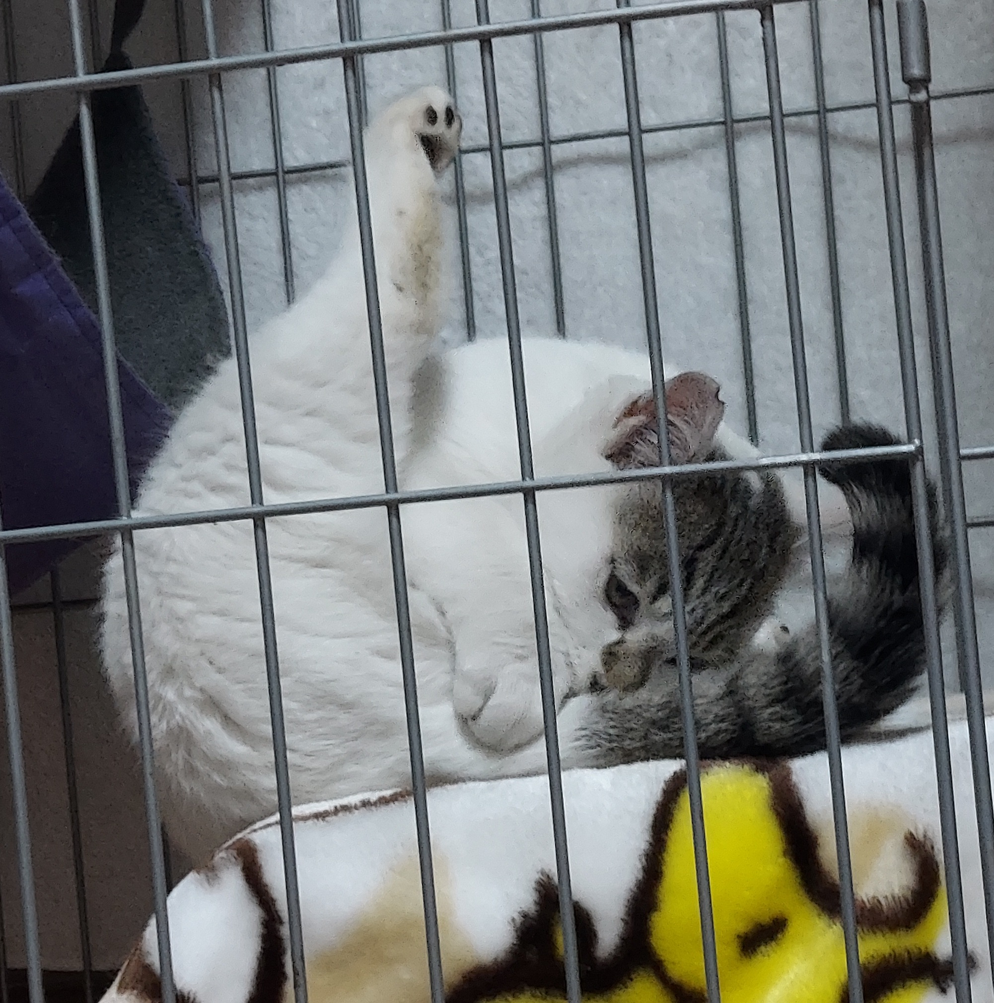 猫こたつやホカホカの敷物を拒絶して、わざわざケージの隅っこの寒いところで固まっていました。