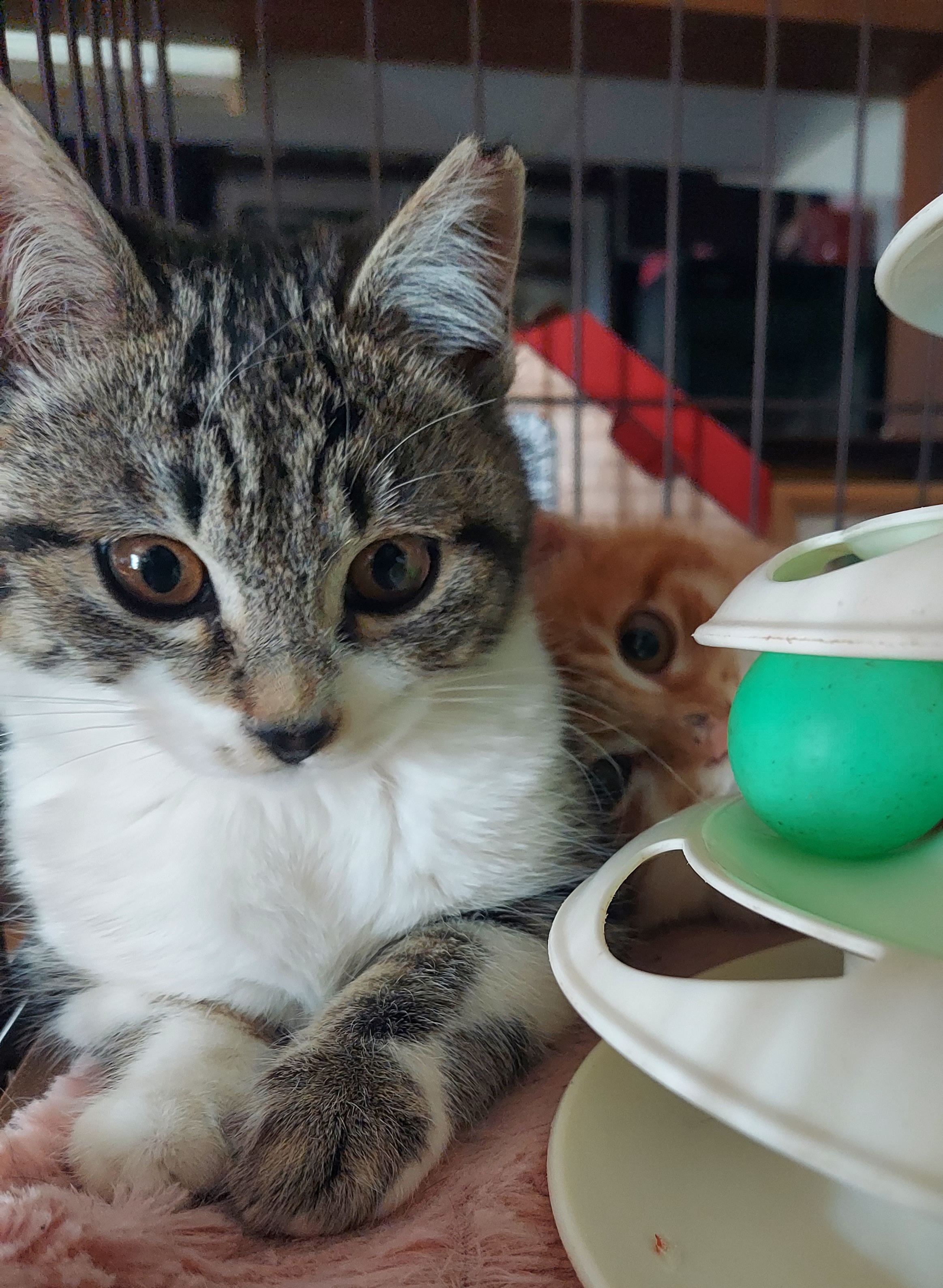 ケージの中を所狭しと取っ組み合いに追いかけっこする冬馬くんに雪乃ちゃん。