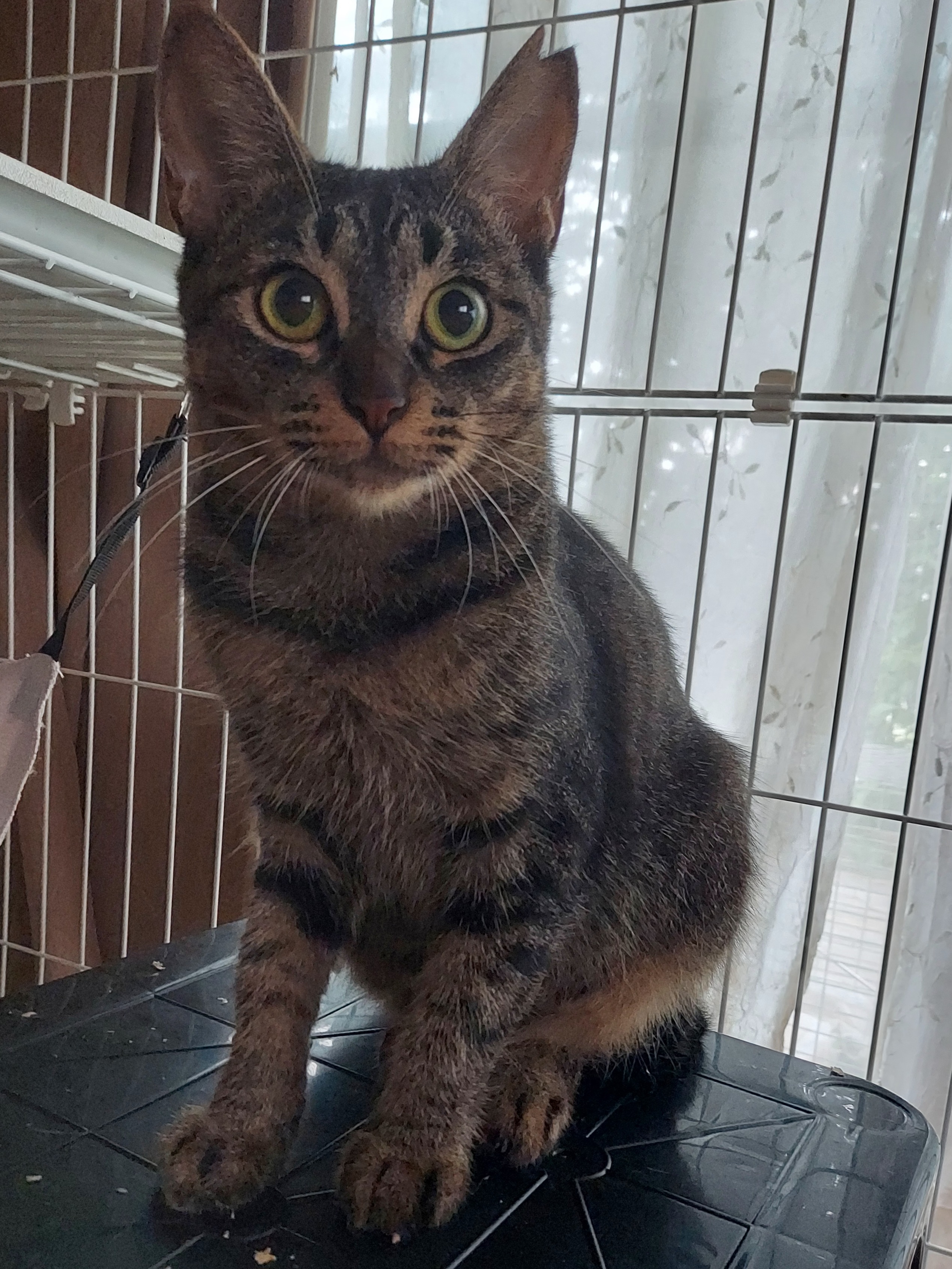 もえさん、相変わらずシャーしますが室内ケージ暮らしにも馴染んできました。