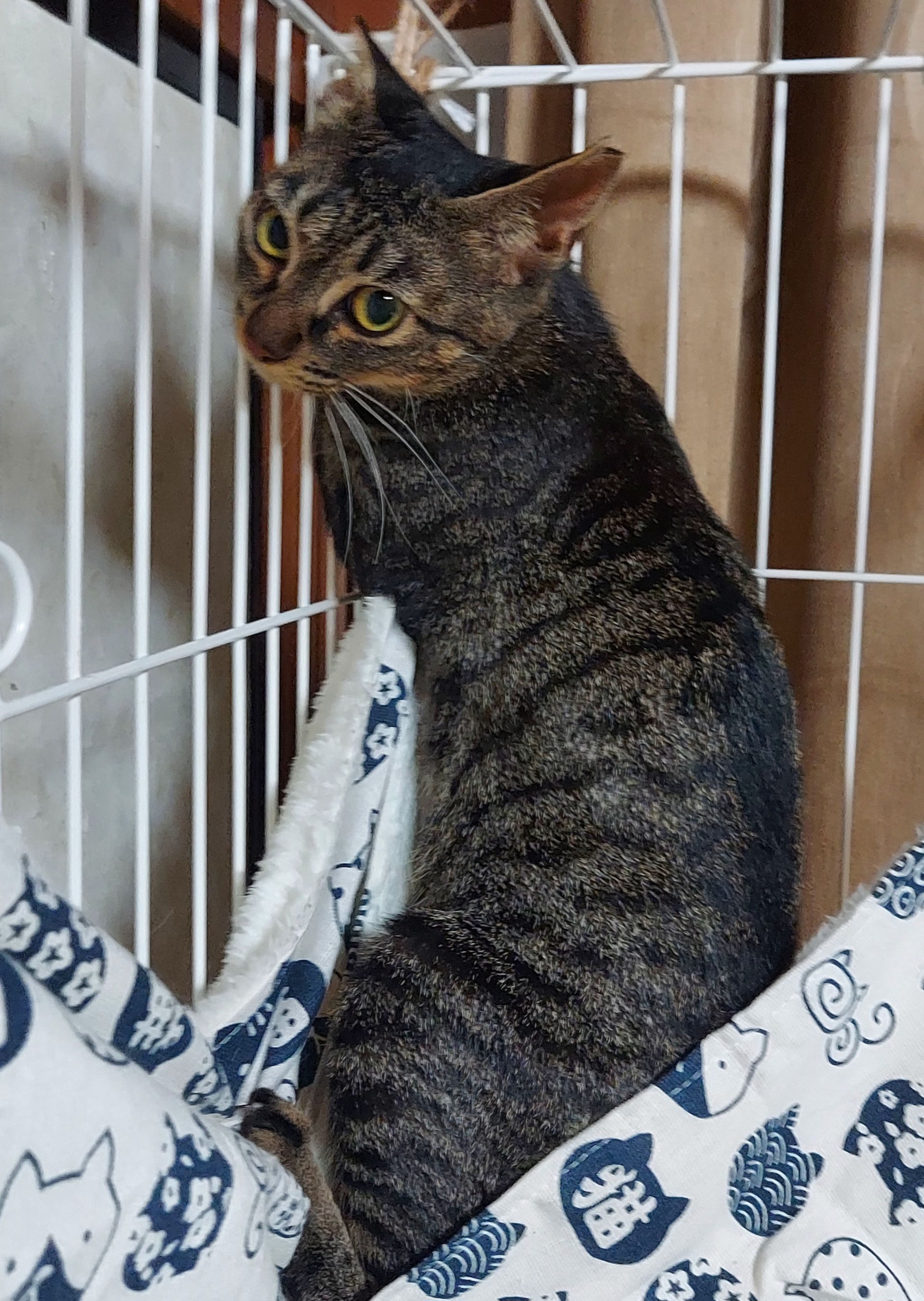 ビビリではありますがケージの中ではおどおどした様子もなく肝が座っている子です。