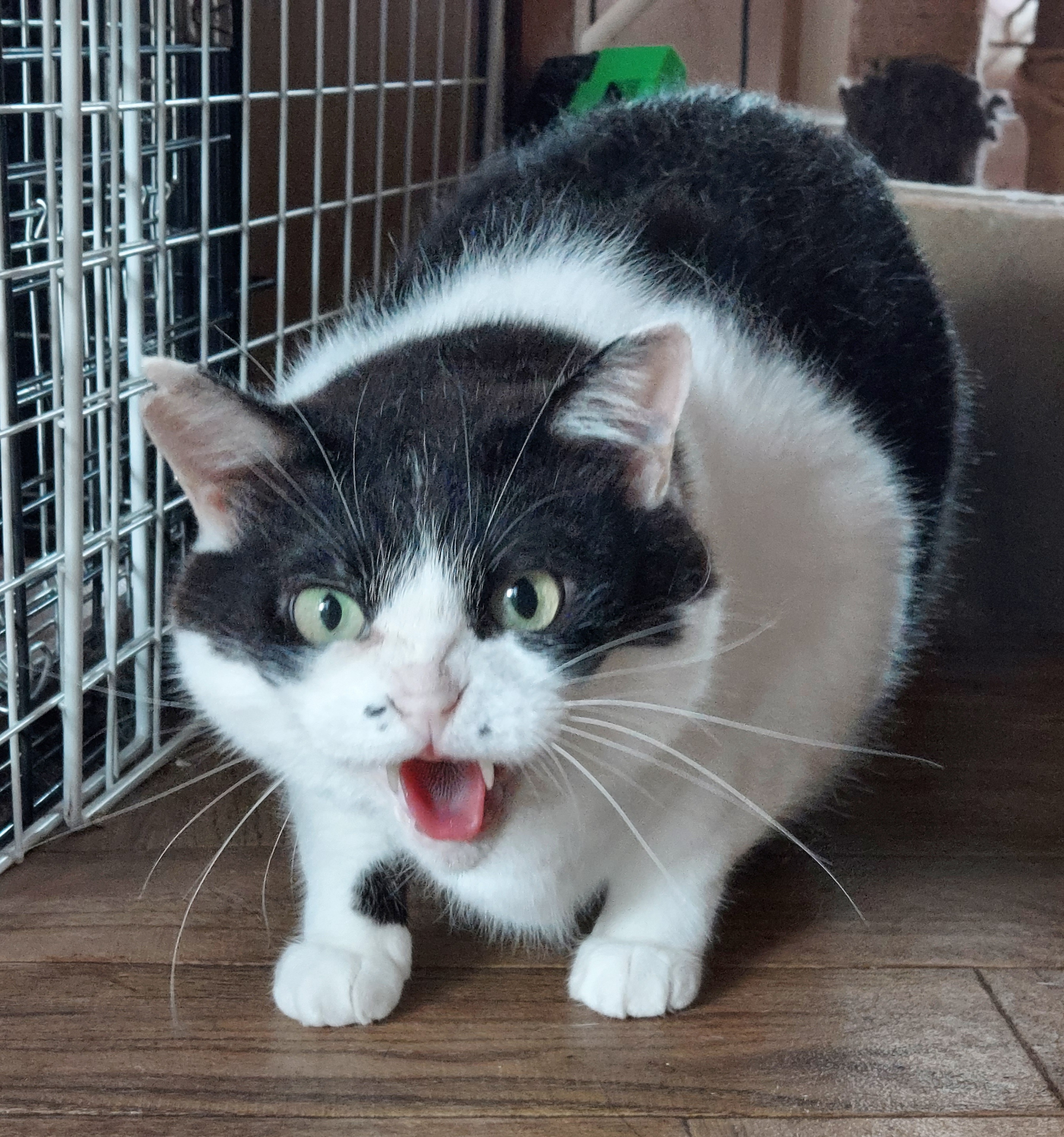 マンチカンみたいな体格の(単に太りすぎて手足が短く見えるだけ(笑))太一、いっちょまえに美鈴さんにシャー!