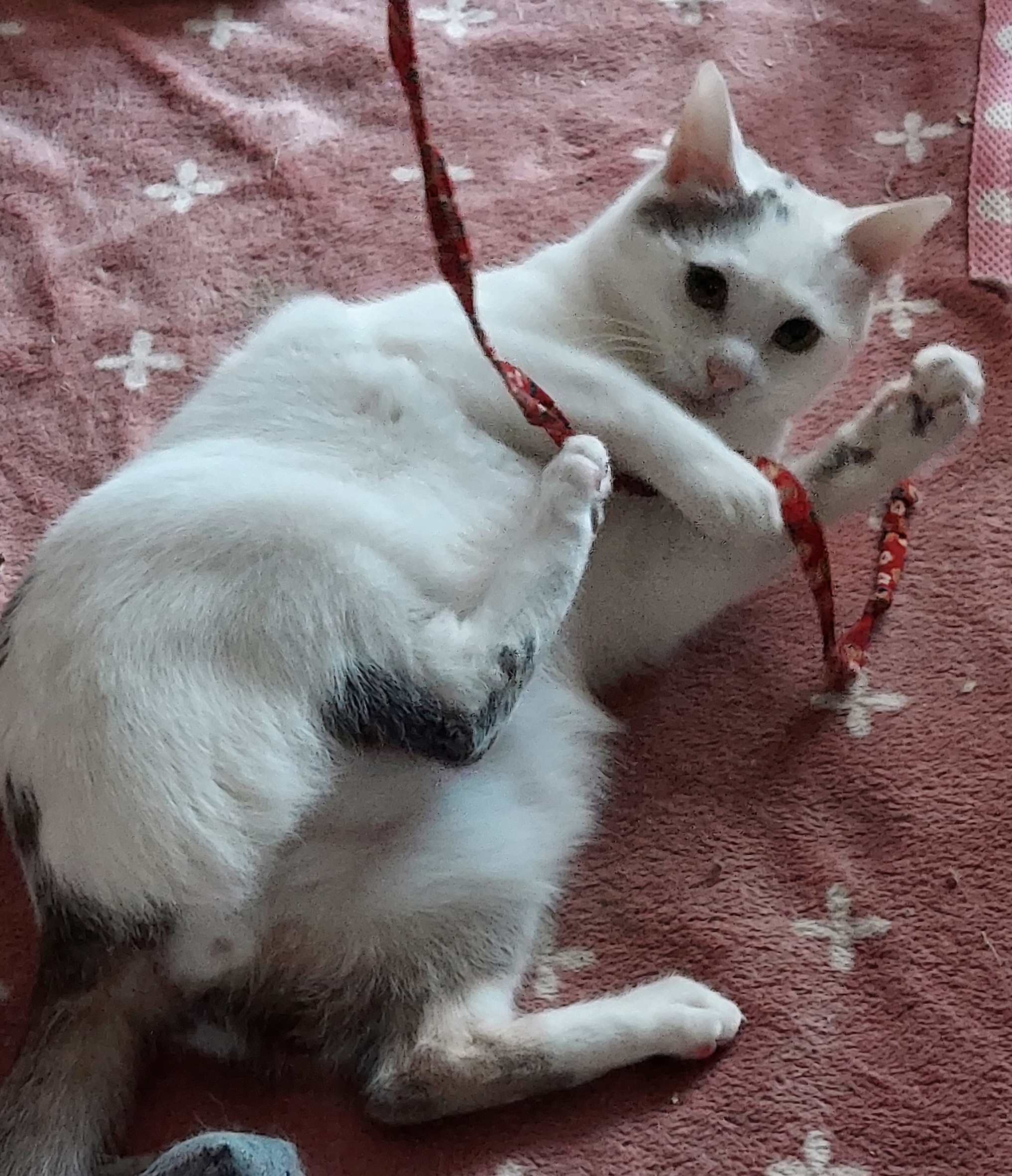 関わって一緒に遊ぶ子はいませんが、私のフリフリ猫じゃらしにはくんや琥珀が参加します。