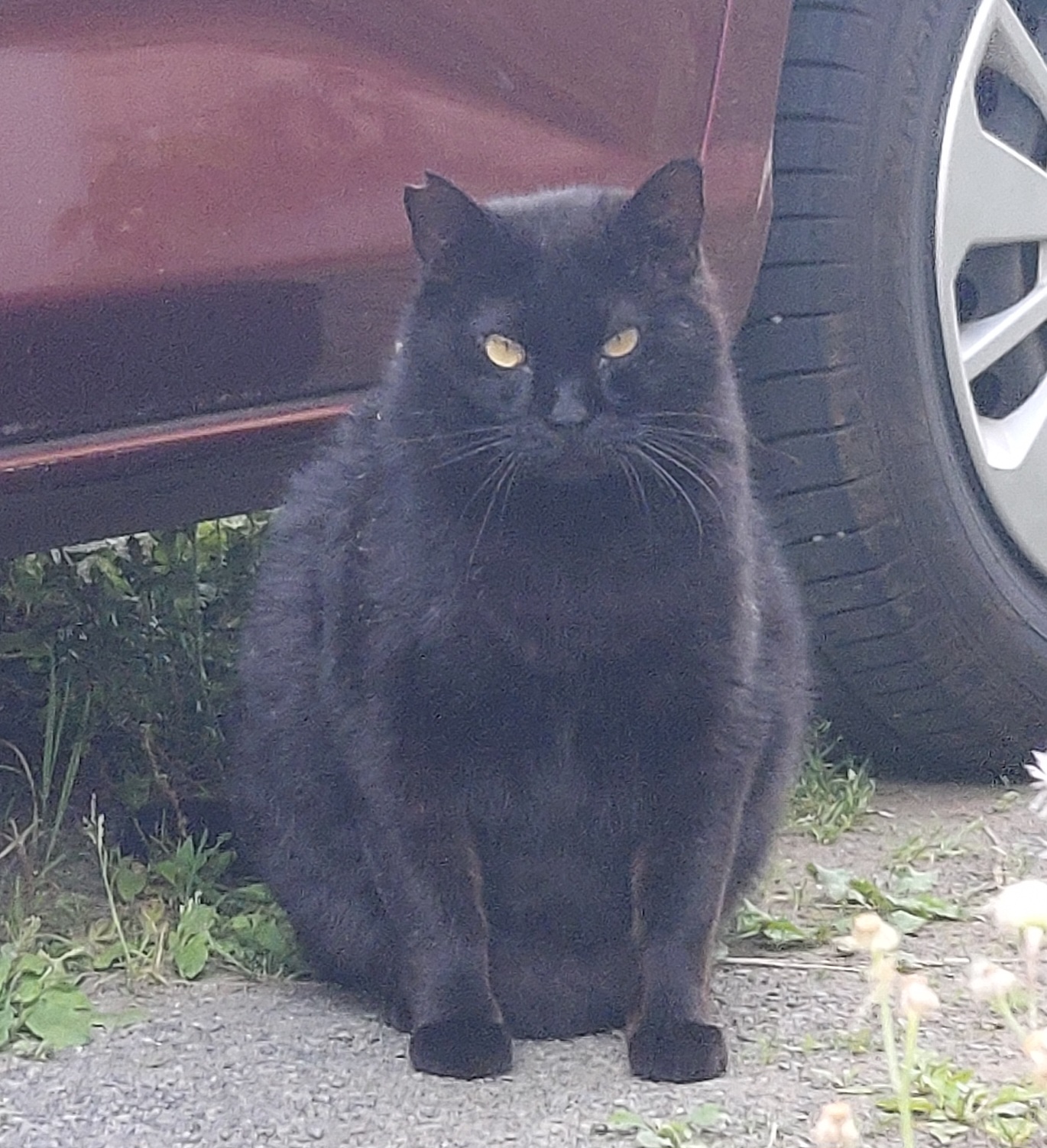 家の前の駐車場でゴロゴロするのが日課かにゃ?