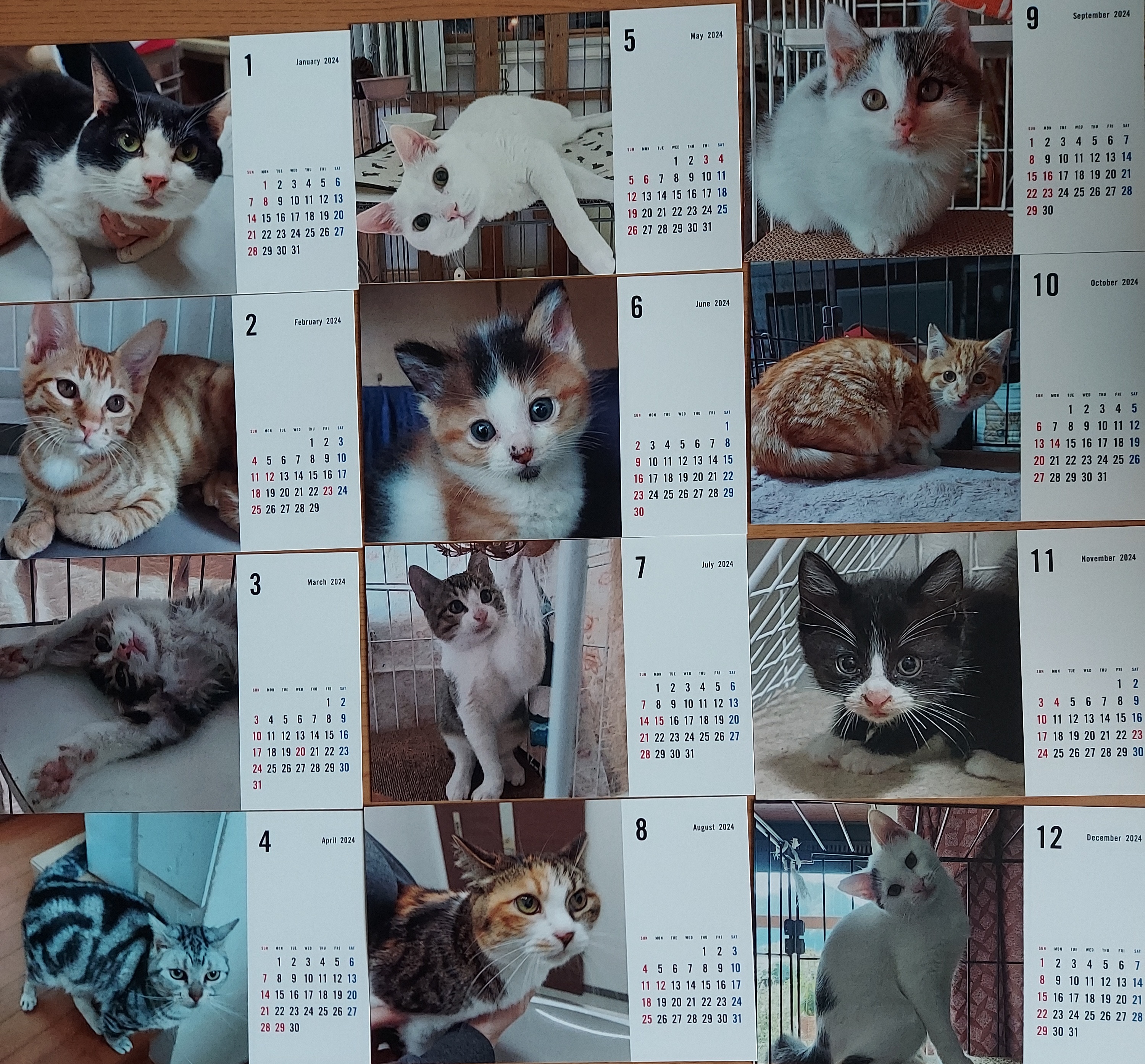 昨年10月後半から今年9月までに保護されたにゃん子達が月替わりで登場する、来年度の保護猫カレンダーが出来上がりました❗