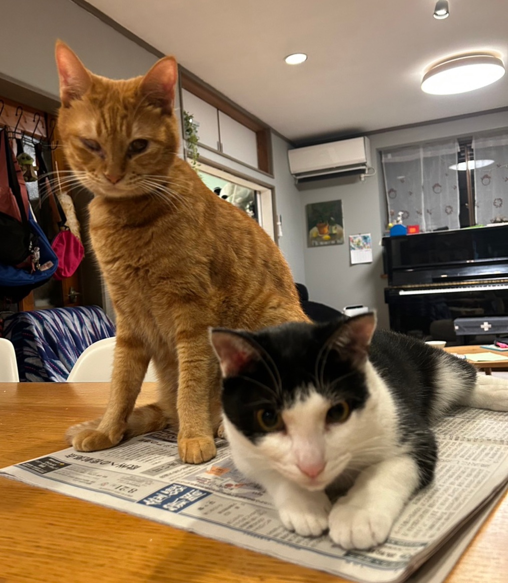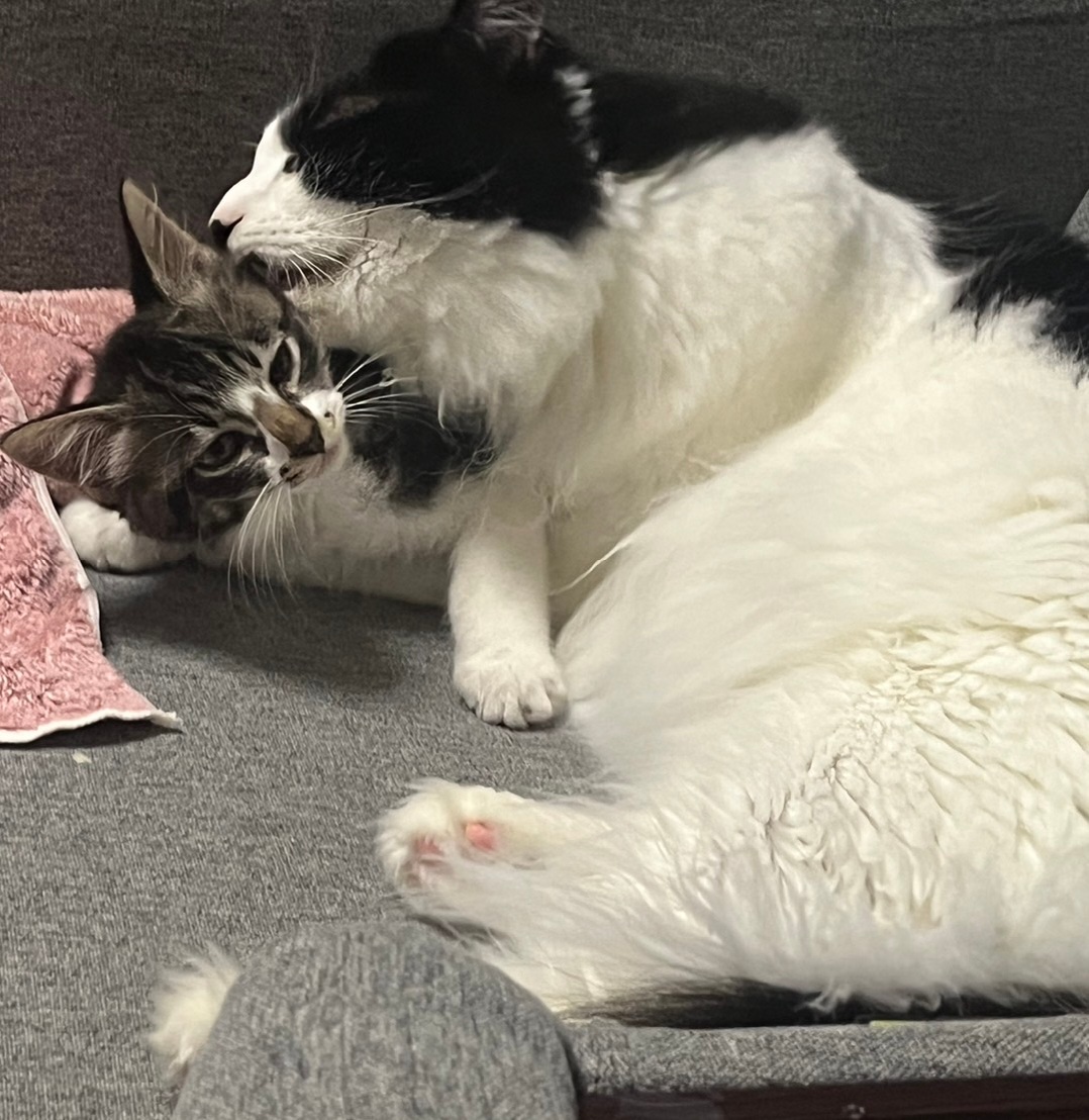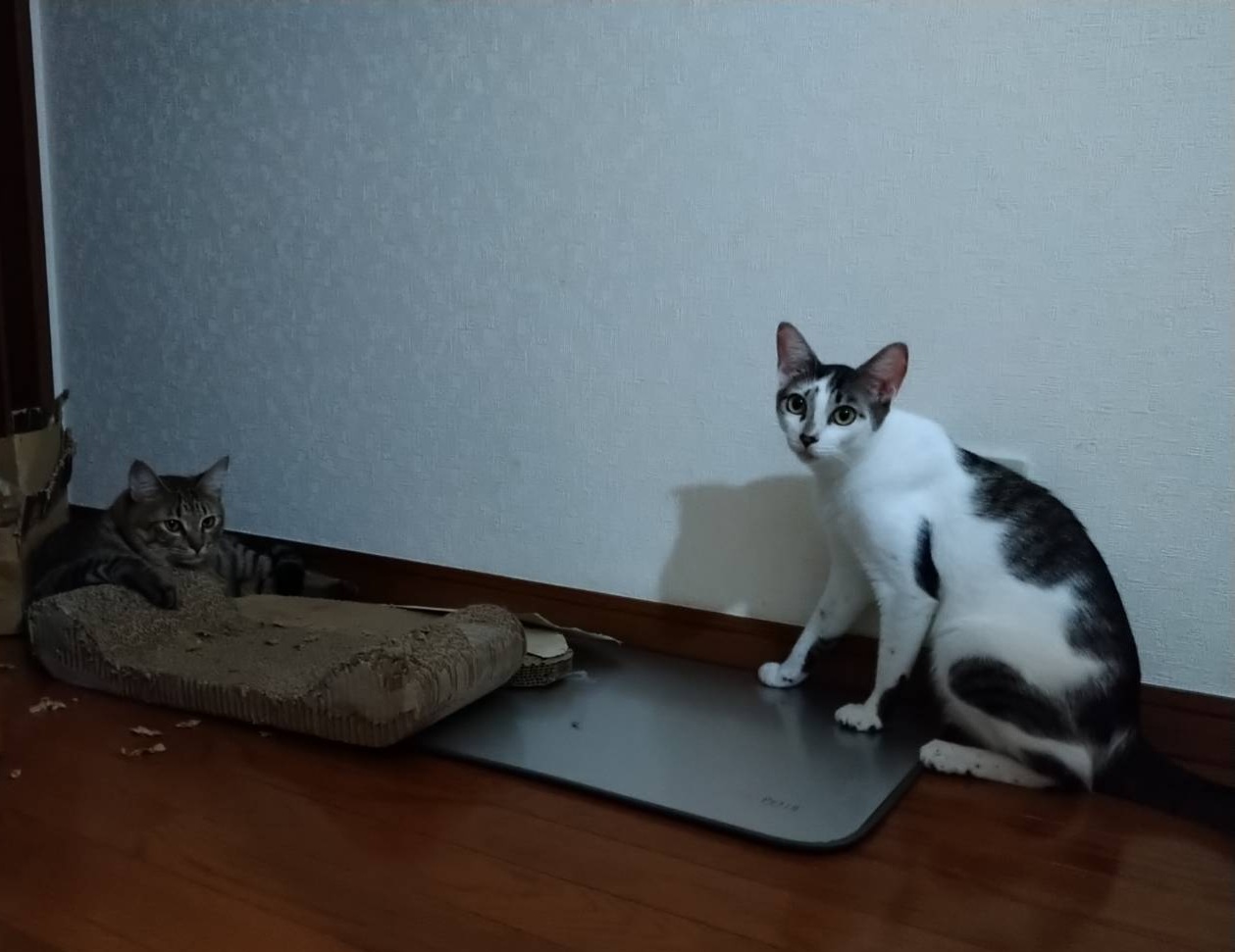 あずきちゃんちに保護猫の新入り男子が迎えられ、威嚇からの仲良し?に発展中かな?