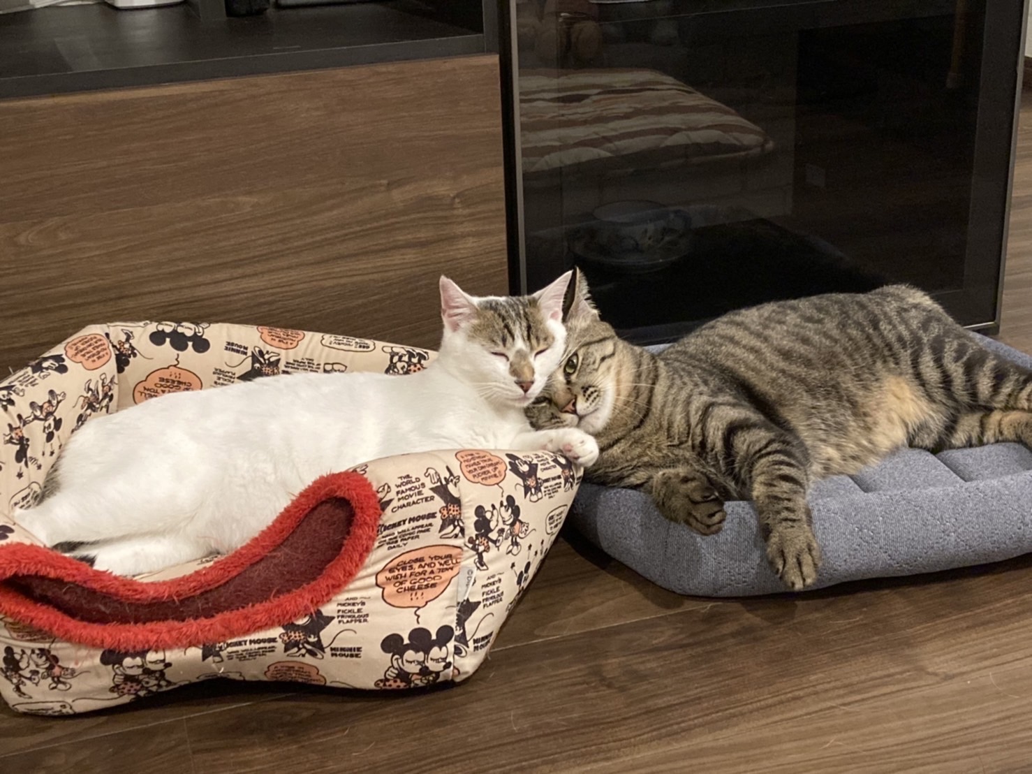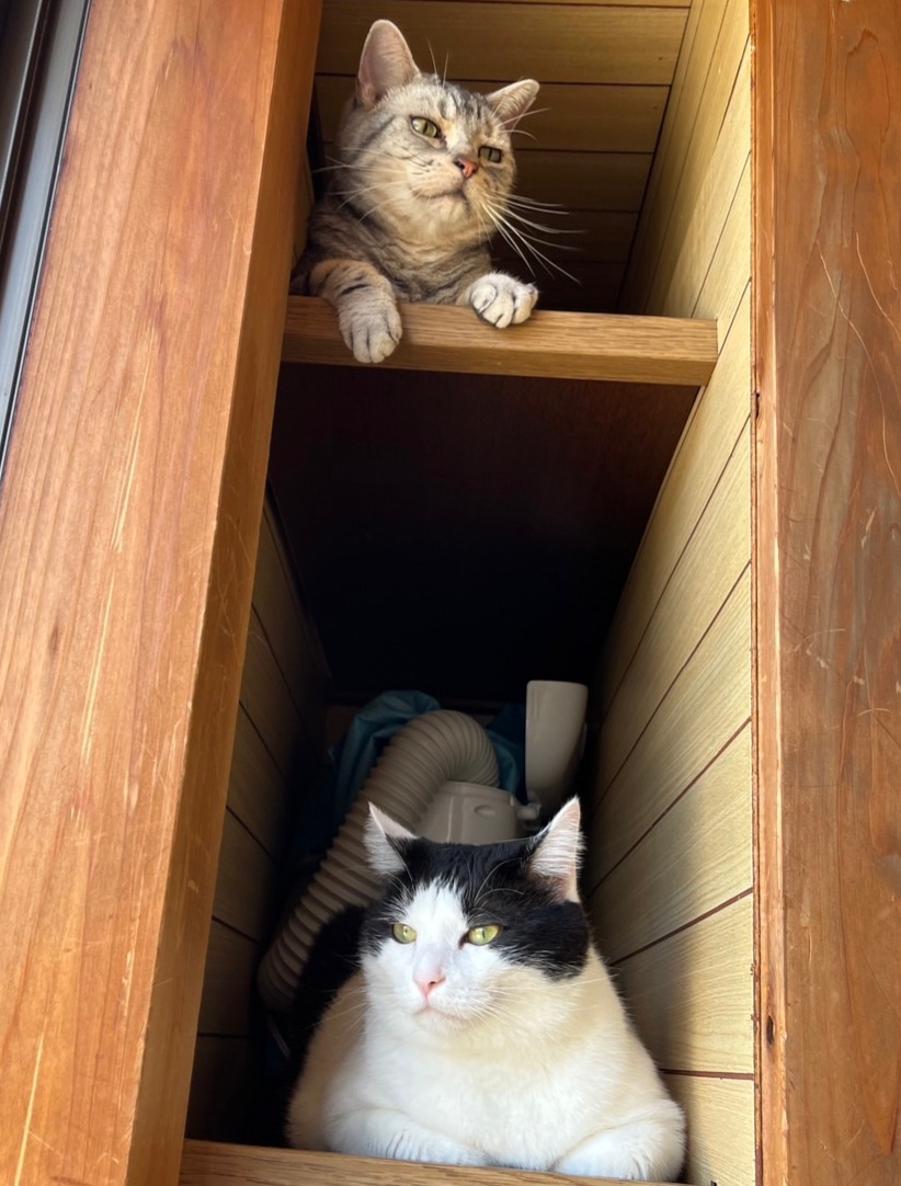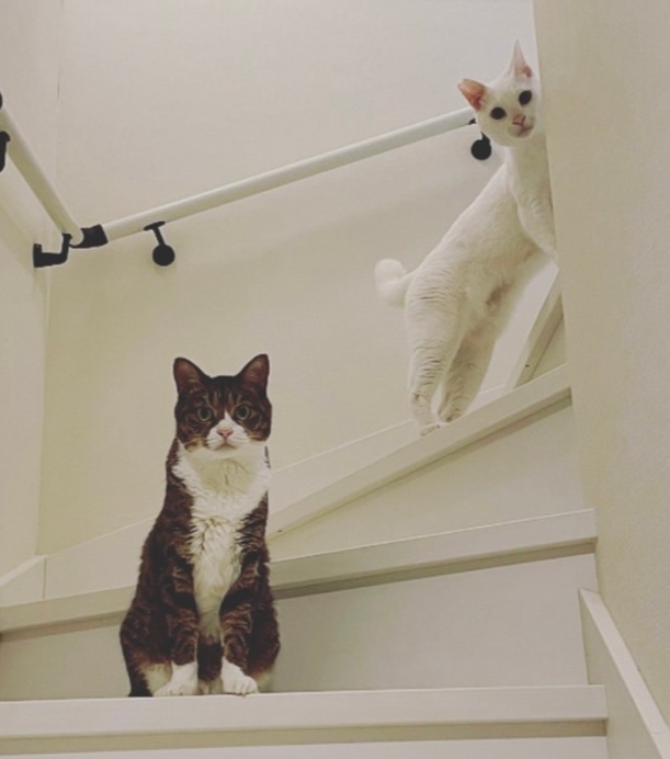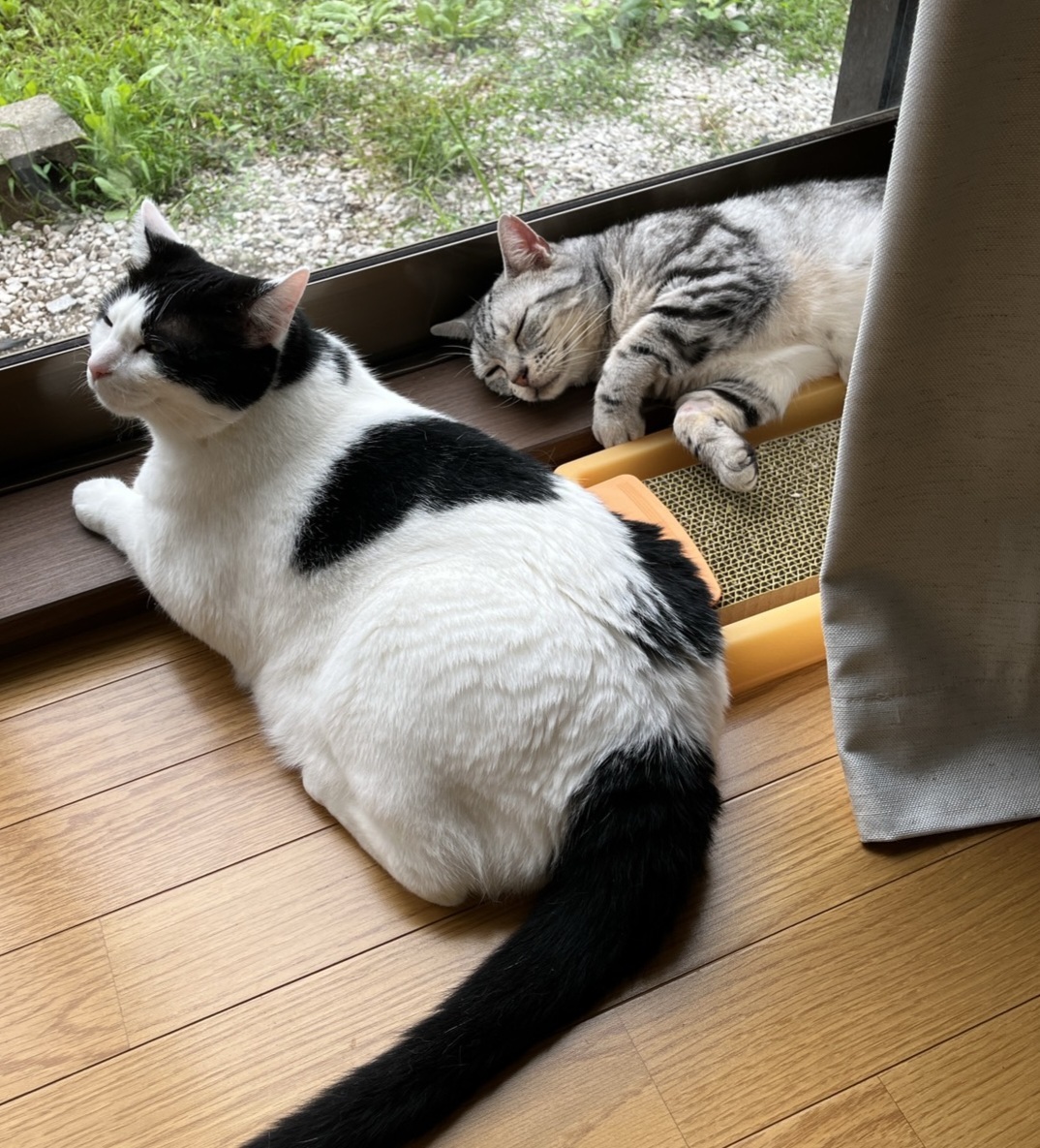 あずきちゃんちに保護猫の新入り男子が迎えられ、威嚇からの仲良し?に発展中かな?