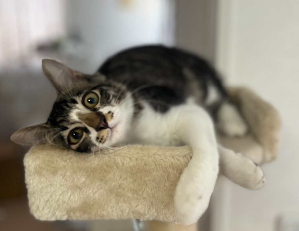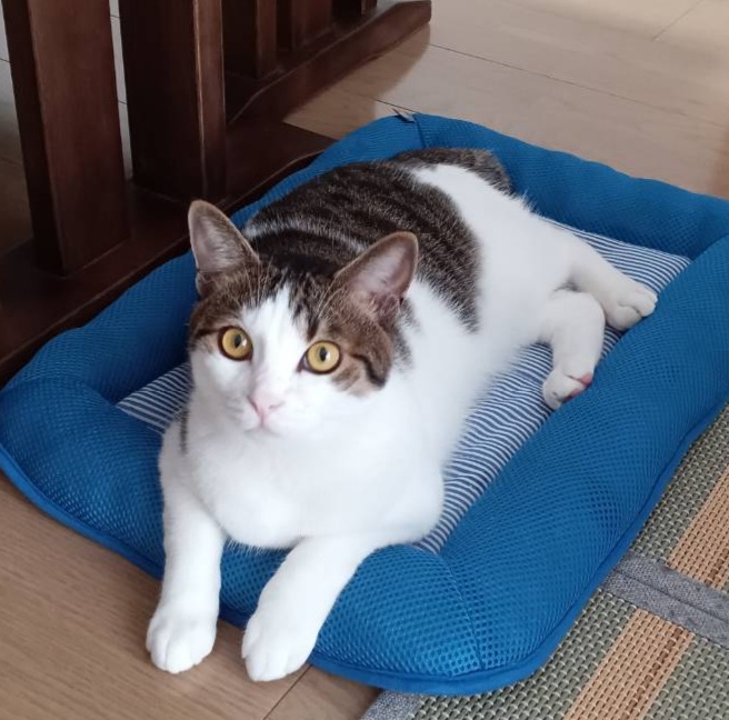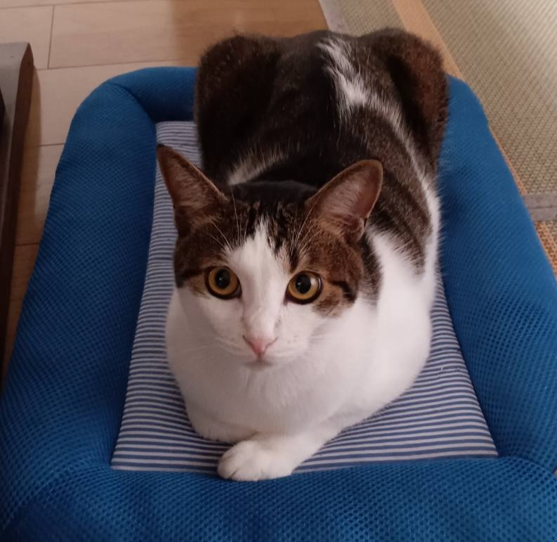 ご縁が繋がったムーくんははちくんと改名し、甘えてすり寄り膝に来るかわいこちゃんになりました。