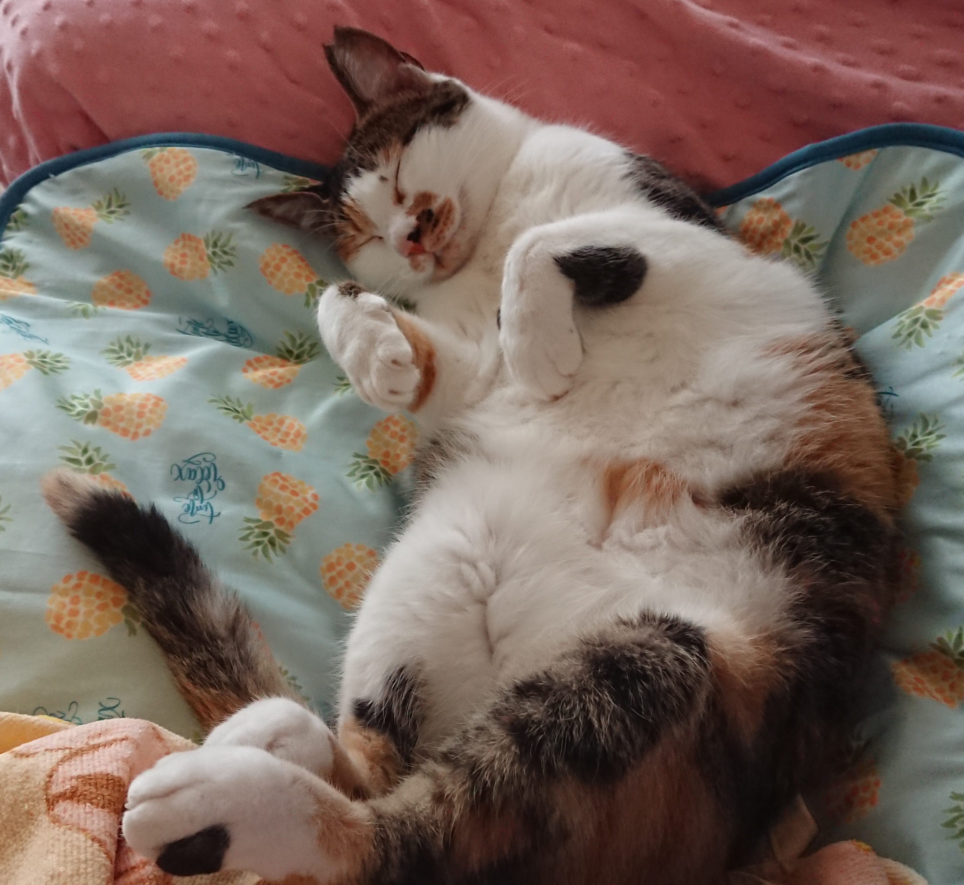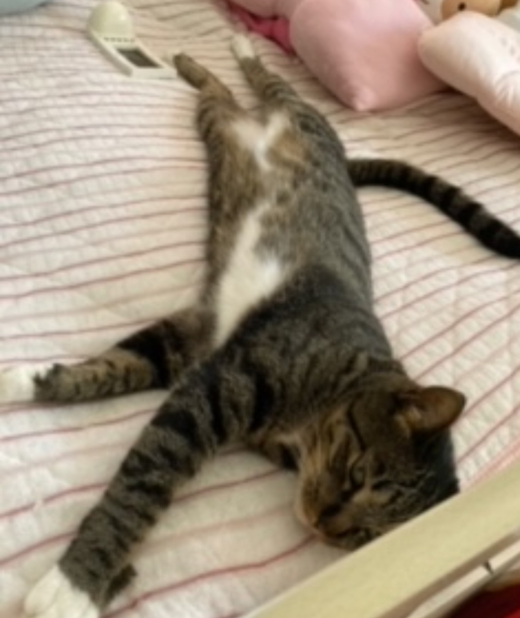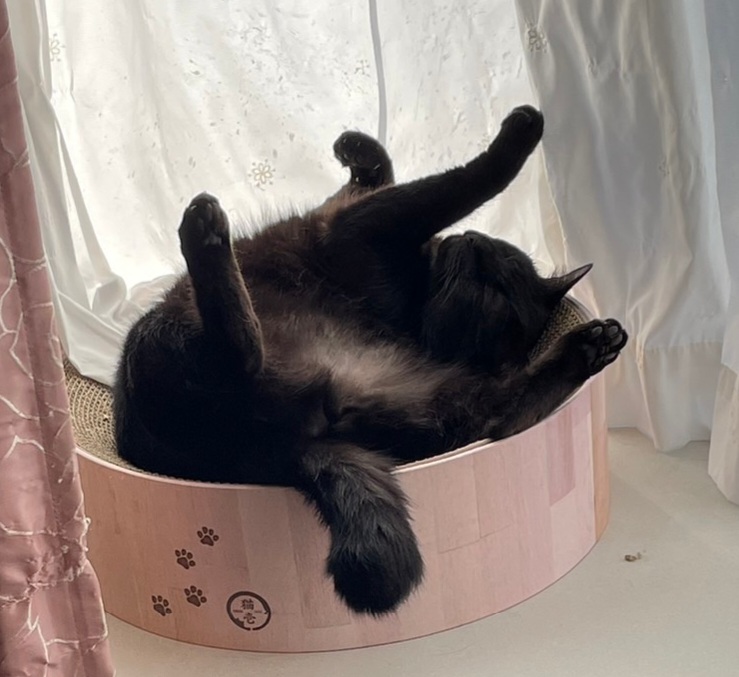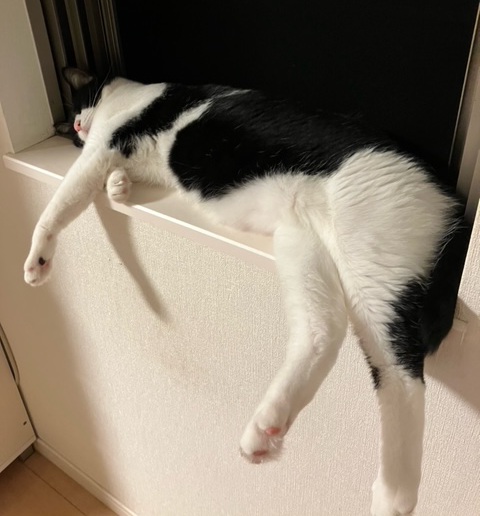 窓から脱走した凛ちゃんですが、無事に帰館しこんな無防備な格好で寝ています