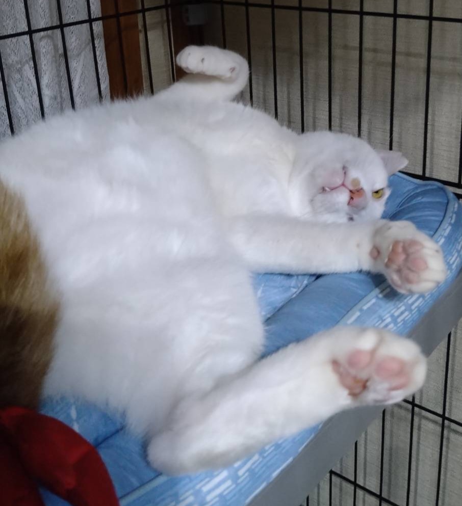 アオくん、真っ白オッドアイの天使です