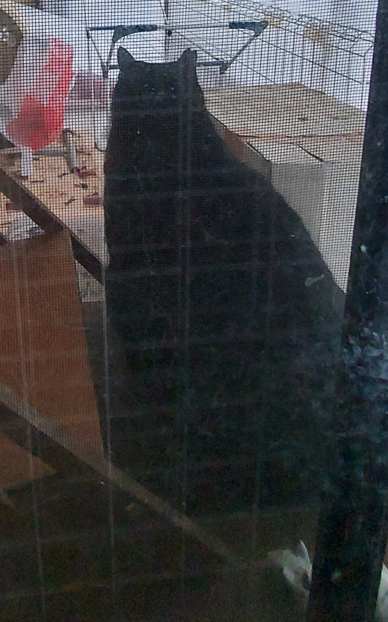 保護猫部屋の隣のウッドデッキにはロッキーが避難していました。