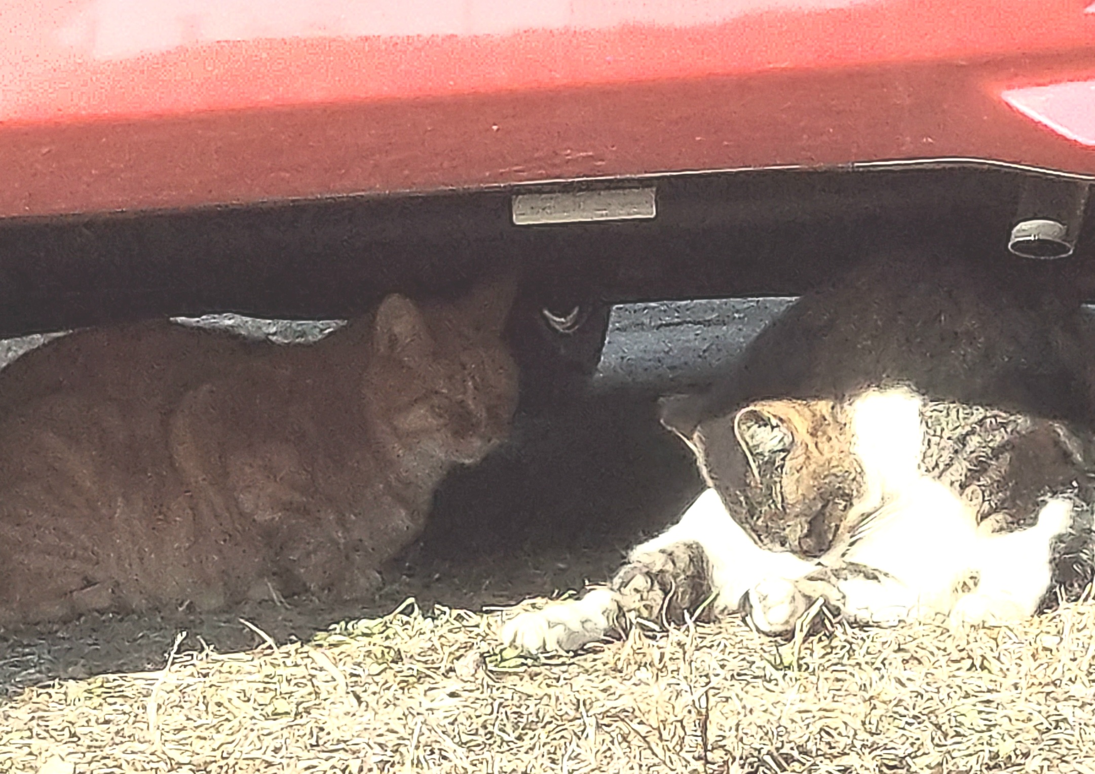 作業小屋にスコップを取りに行ったら、その中の猫ハウスに避難していたマルタとちゃごが一斉に逃げ脱して