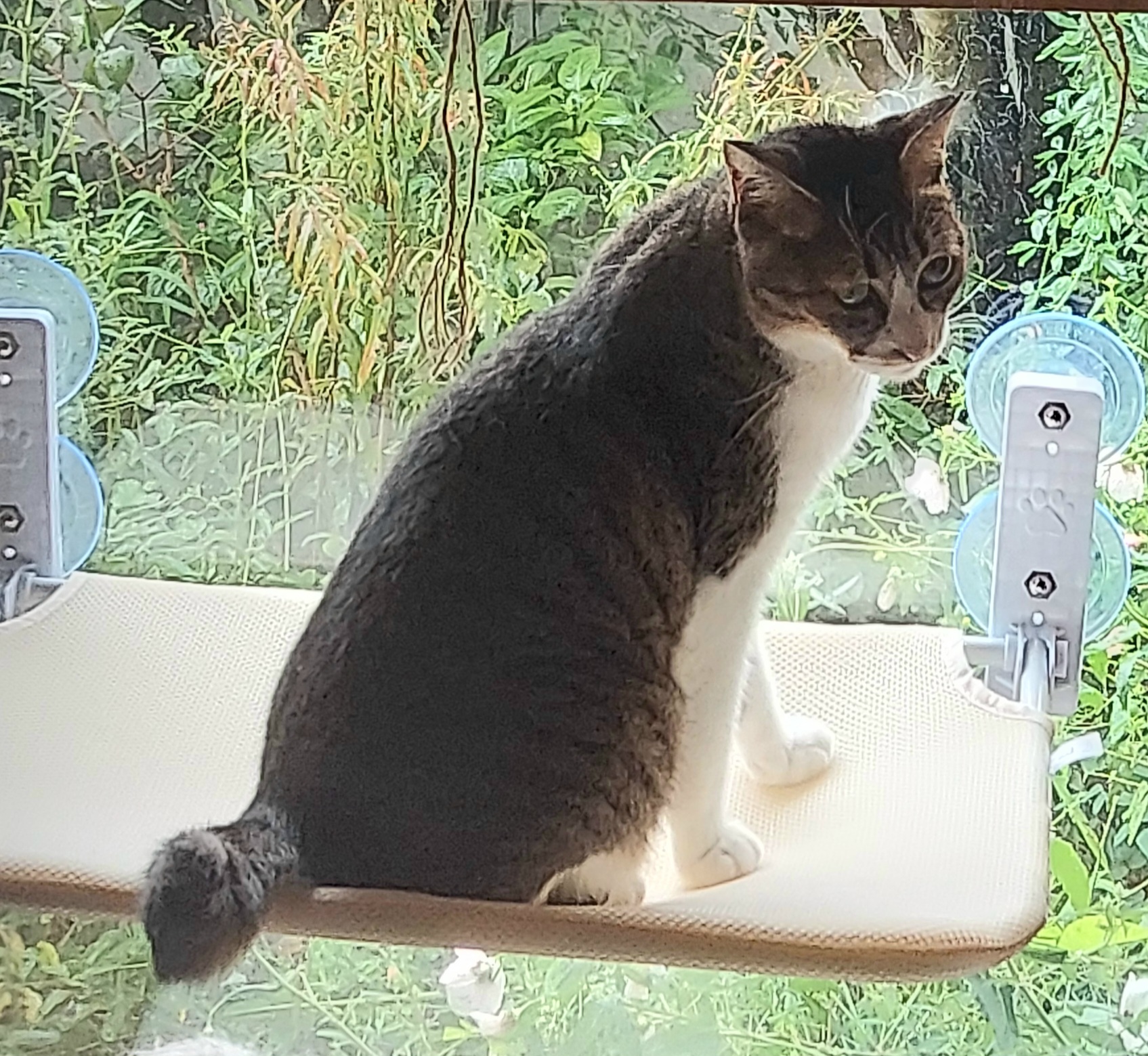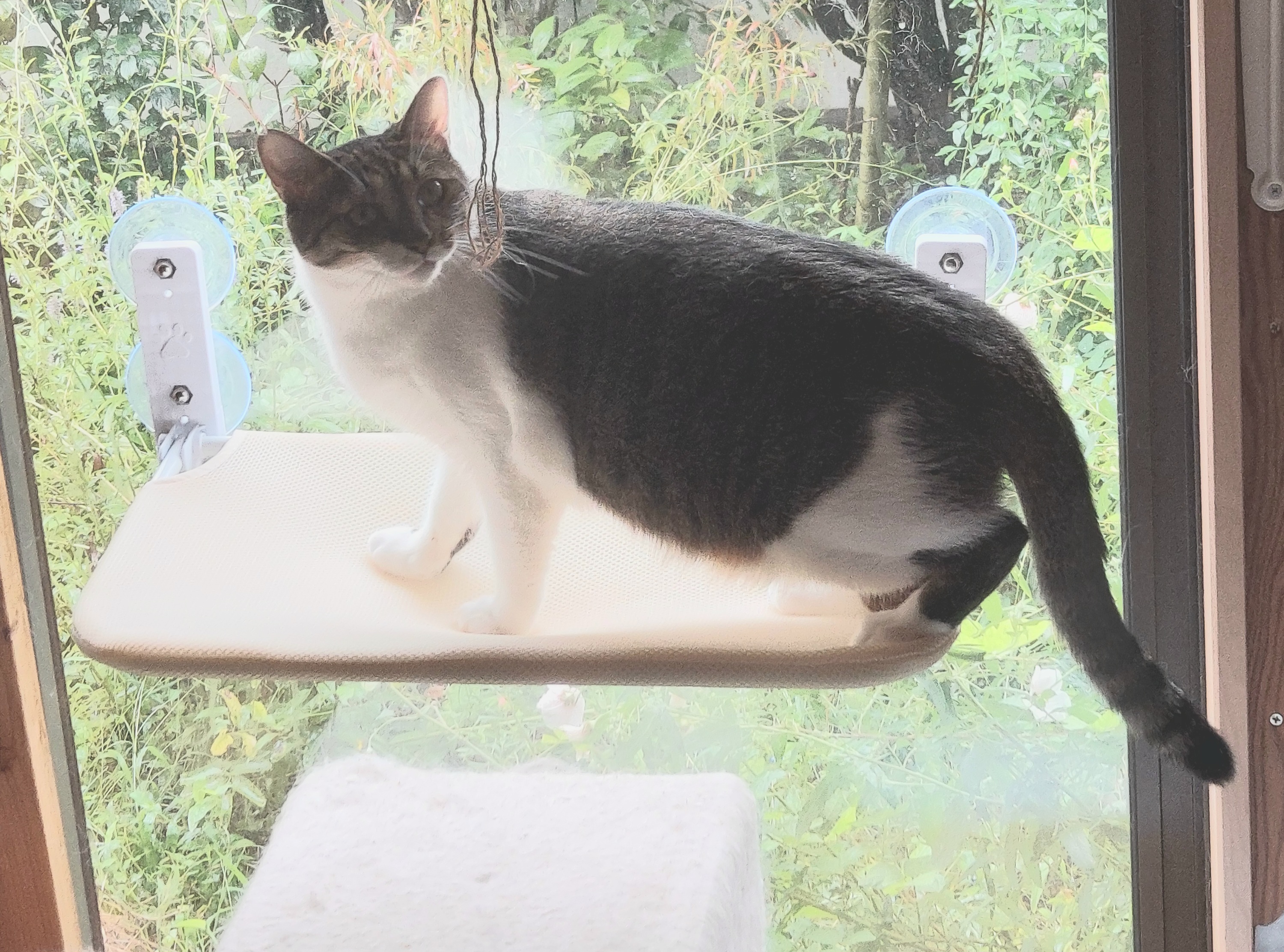 なる、琥珀、げんた、くんの縄張りのリビングの窓に取り付けましたが、何日経っても誰も近寄りません。