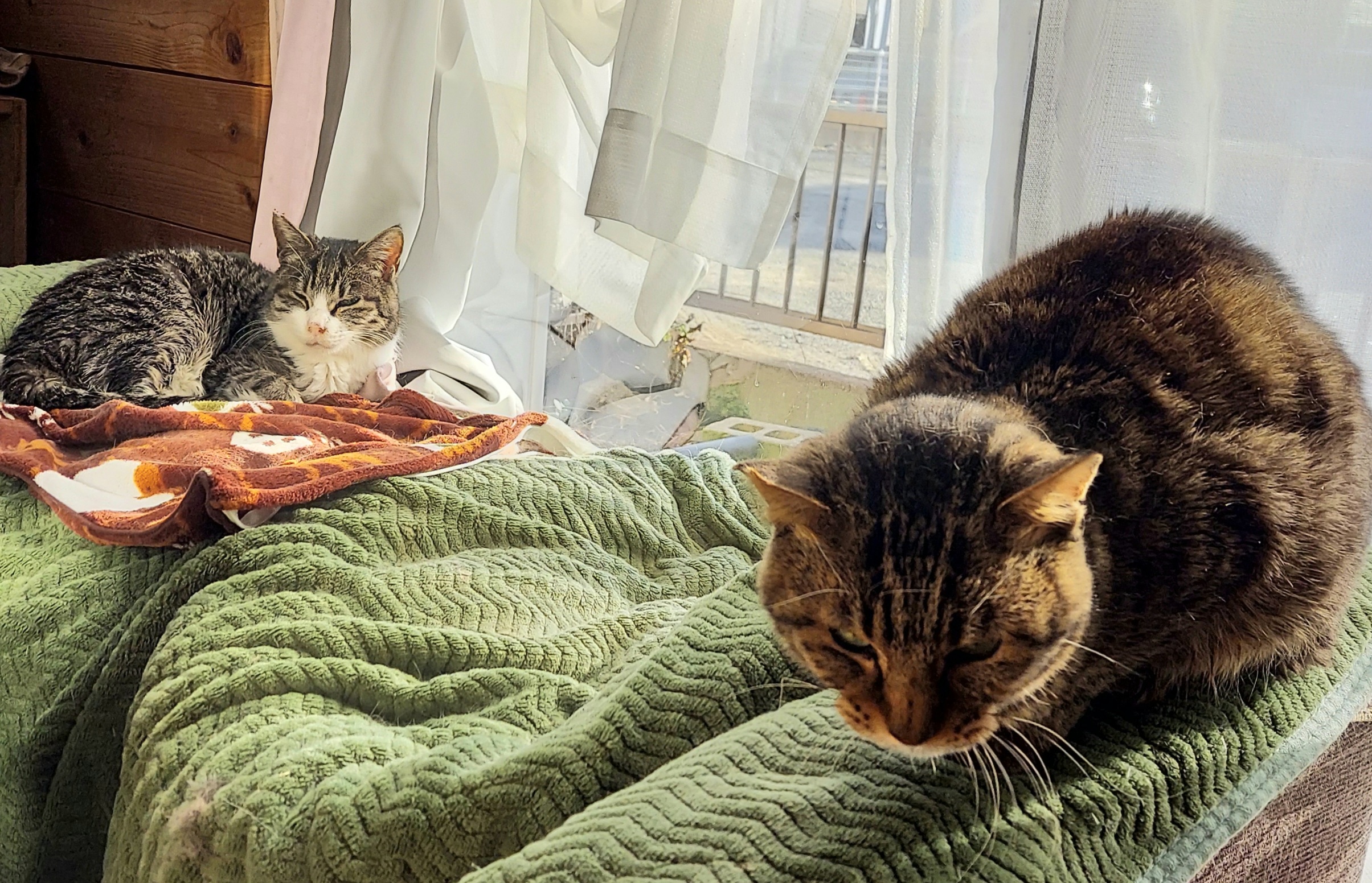 翌日には仲良くではないけれど日向ぼっこしていました。