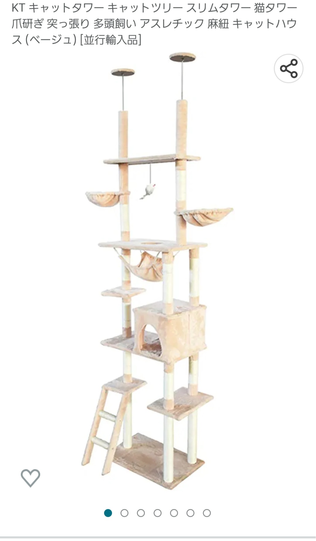 くんの弱いものいじめに端を発し、リビングの雰囲気が悪くてキャットタワーがあれば逃げ場も出来るし良いかなとレビューも見ないで手ごろな価格のものを買ってしまいました。