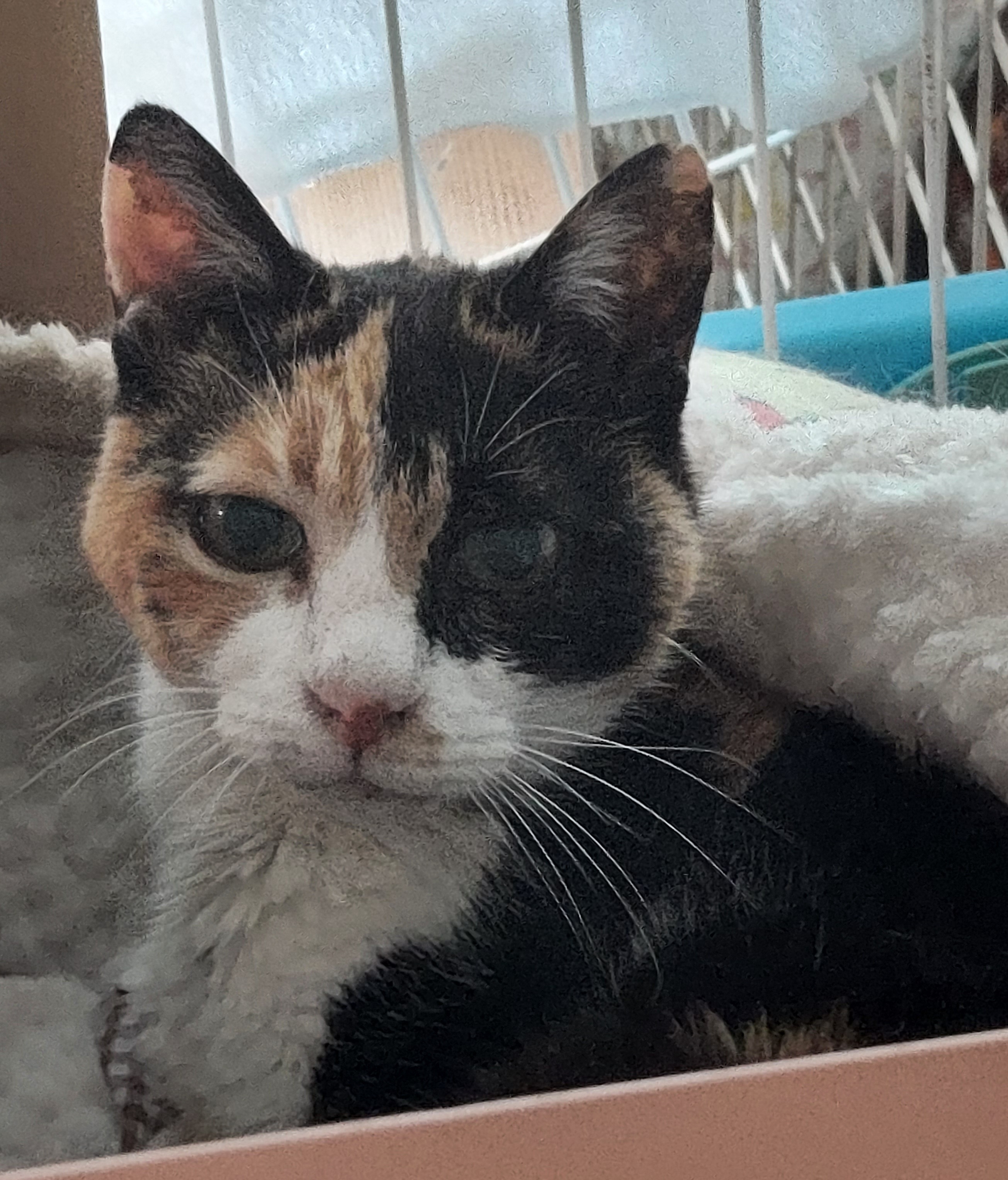 保護猫部屋のリナちゃんの片眼が開かなくなっています。