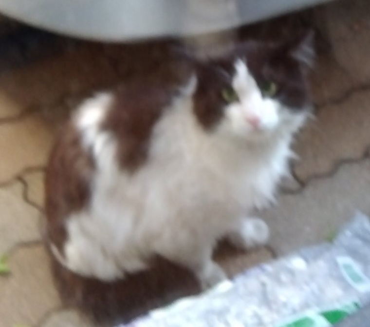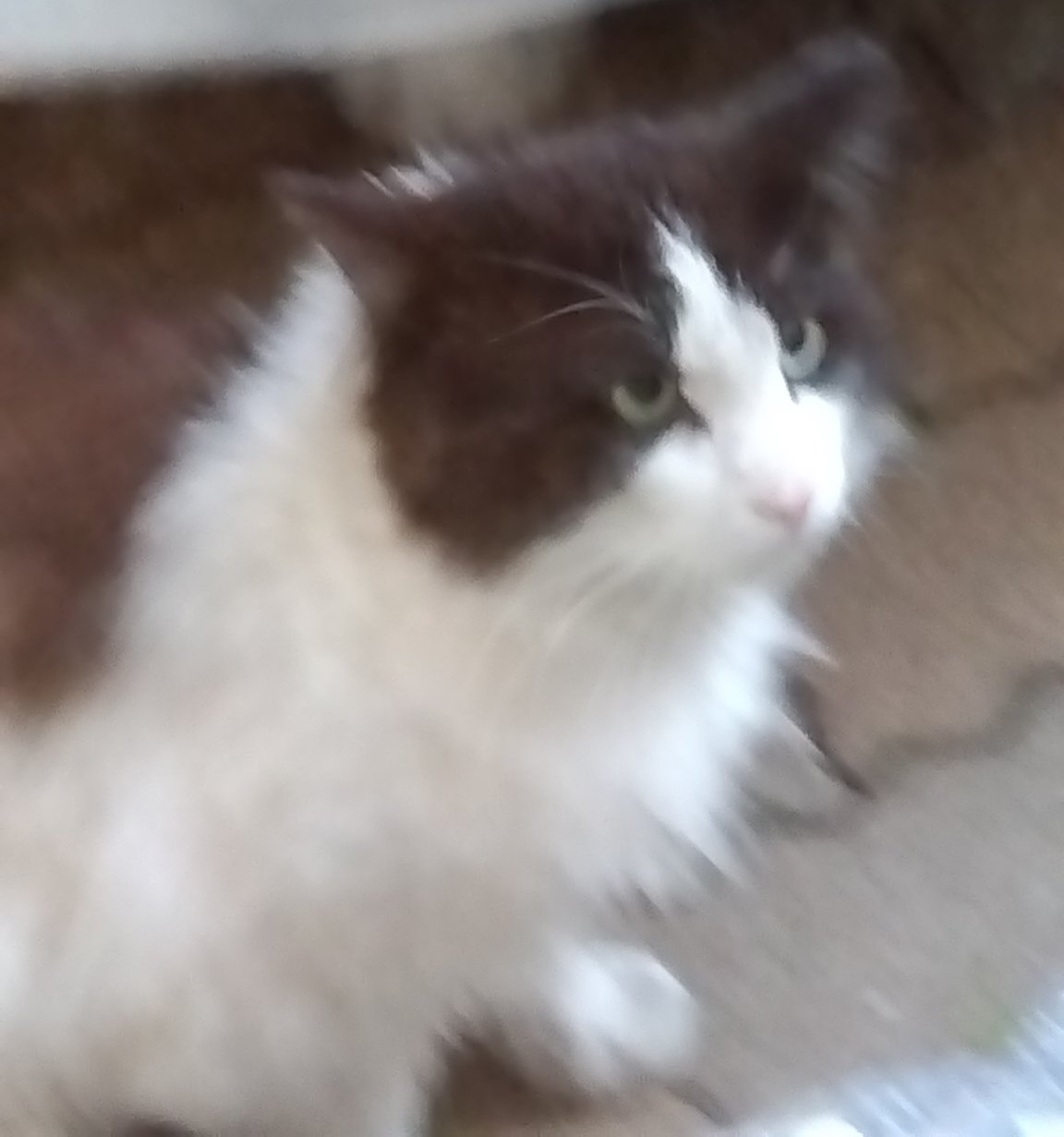 白黒はちわれ半長毛の多分男の子。
