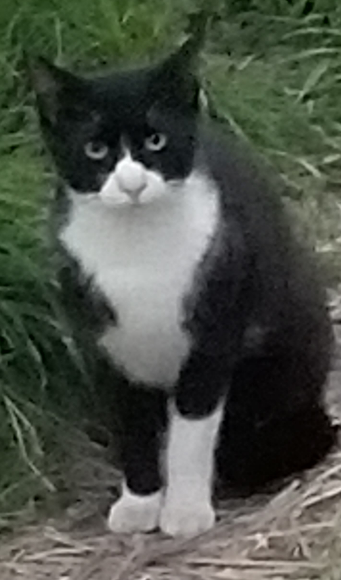 臆病で庭に暮らす猫たちを避けて物置の下にいて、私の現れるのを待っては姿を見せて、ご飯のおねだりをしていました。