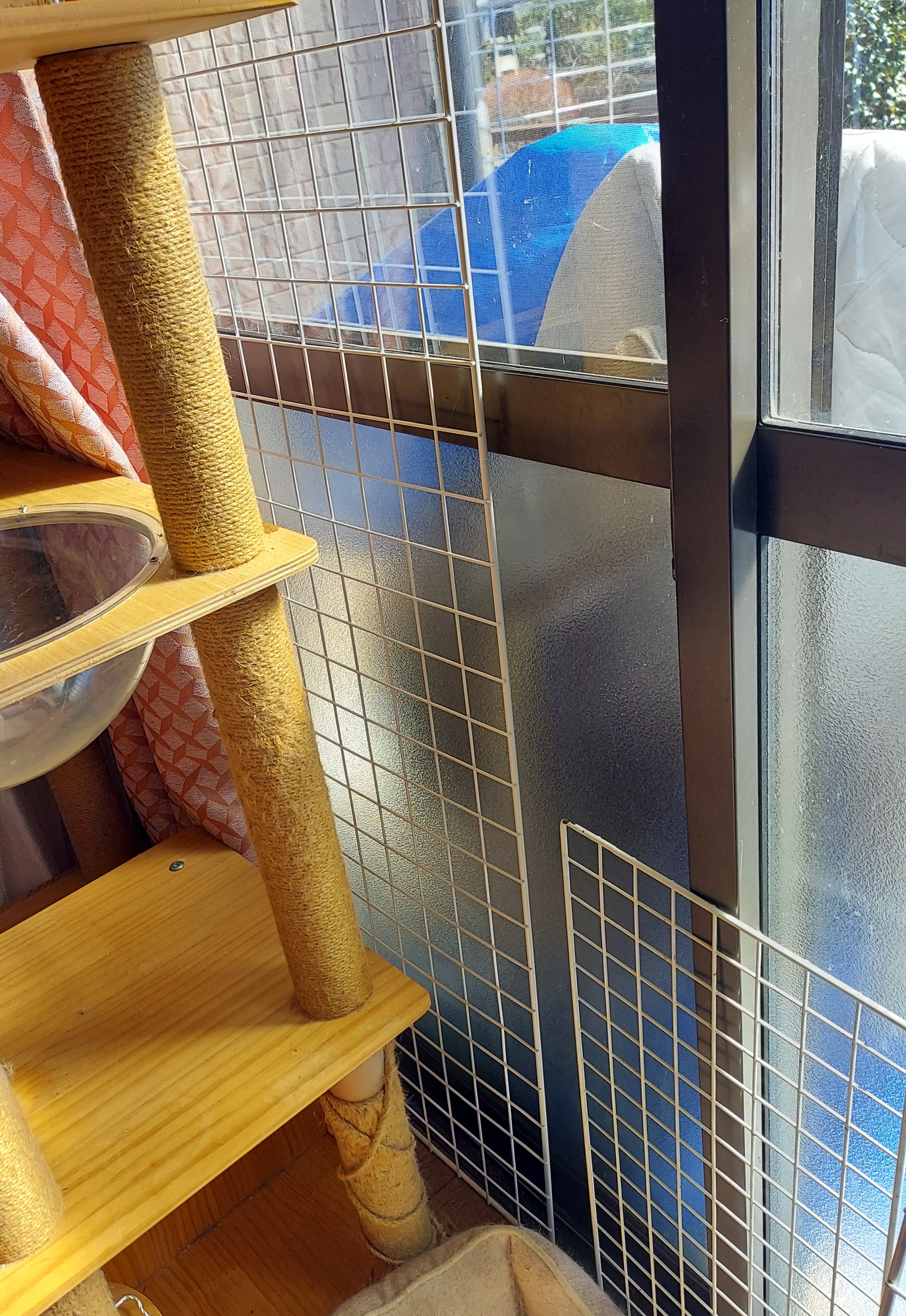 ちなみに窓の外のデッキ側は外猫ベッドなど置いてありすんなり出られなくなっています。