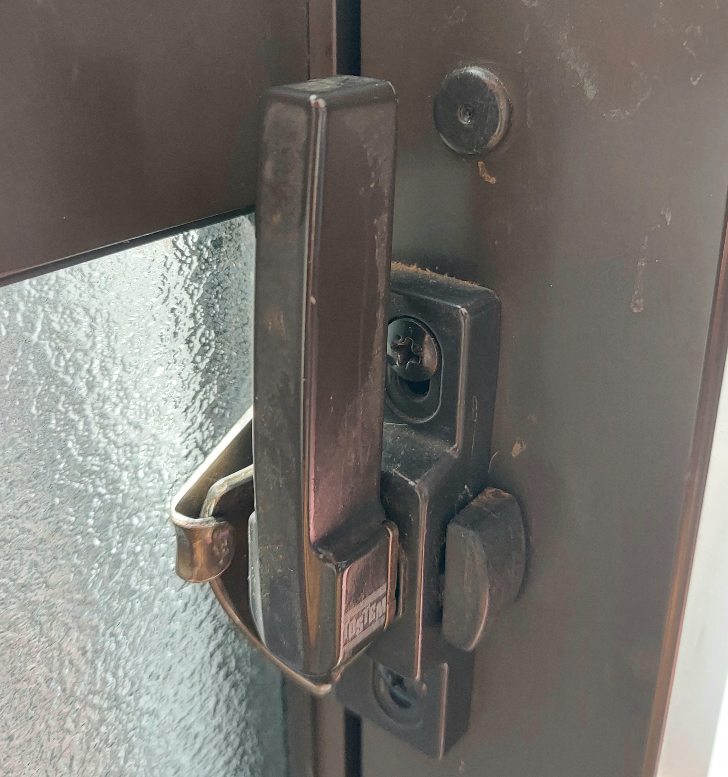 この鍵は最近少し弛くなり簡単に下がったりしてしまうため、手前のつまみを下にスライドさせてダブルロックにしていました。
