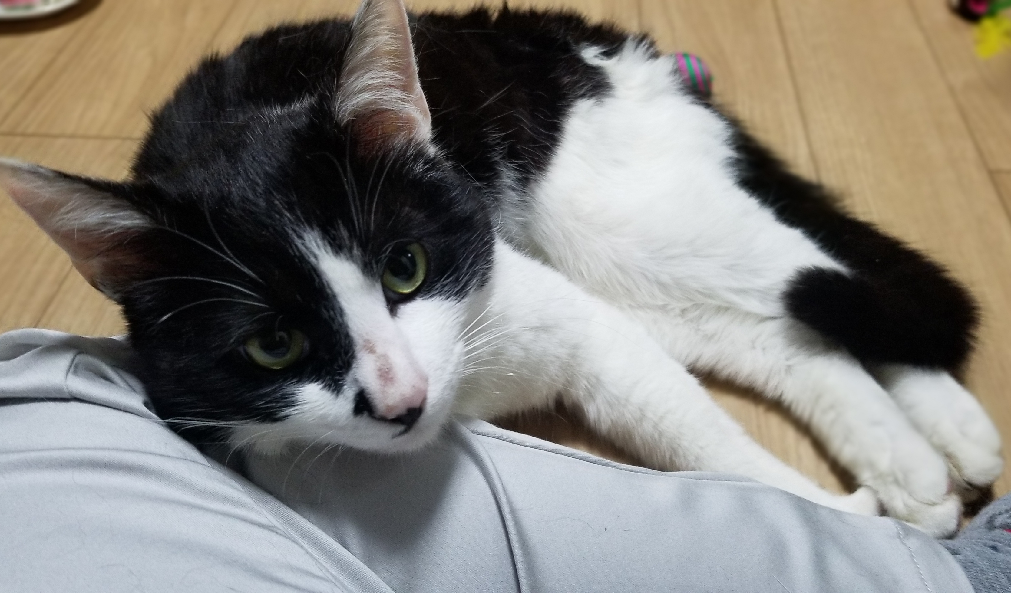 私の足元み身を任せもたれかかり、ゴロゴロして可愛かったです。