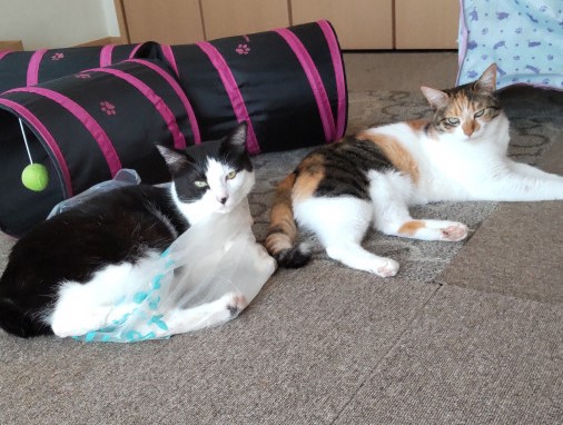 保護猫部屋で暮らすごにゃん。