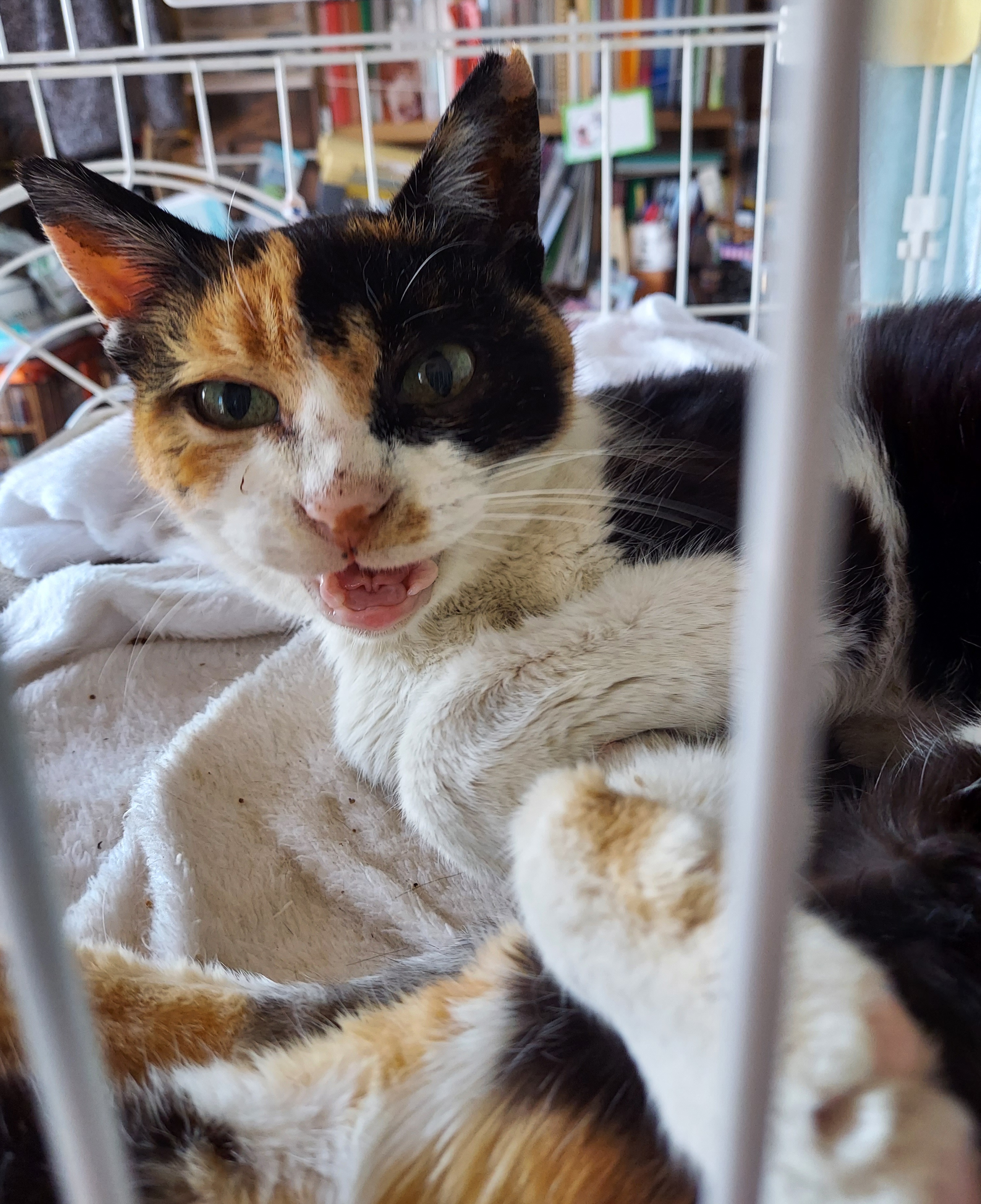 保護猫部屋で暮らすごにゃん。