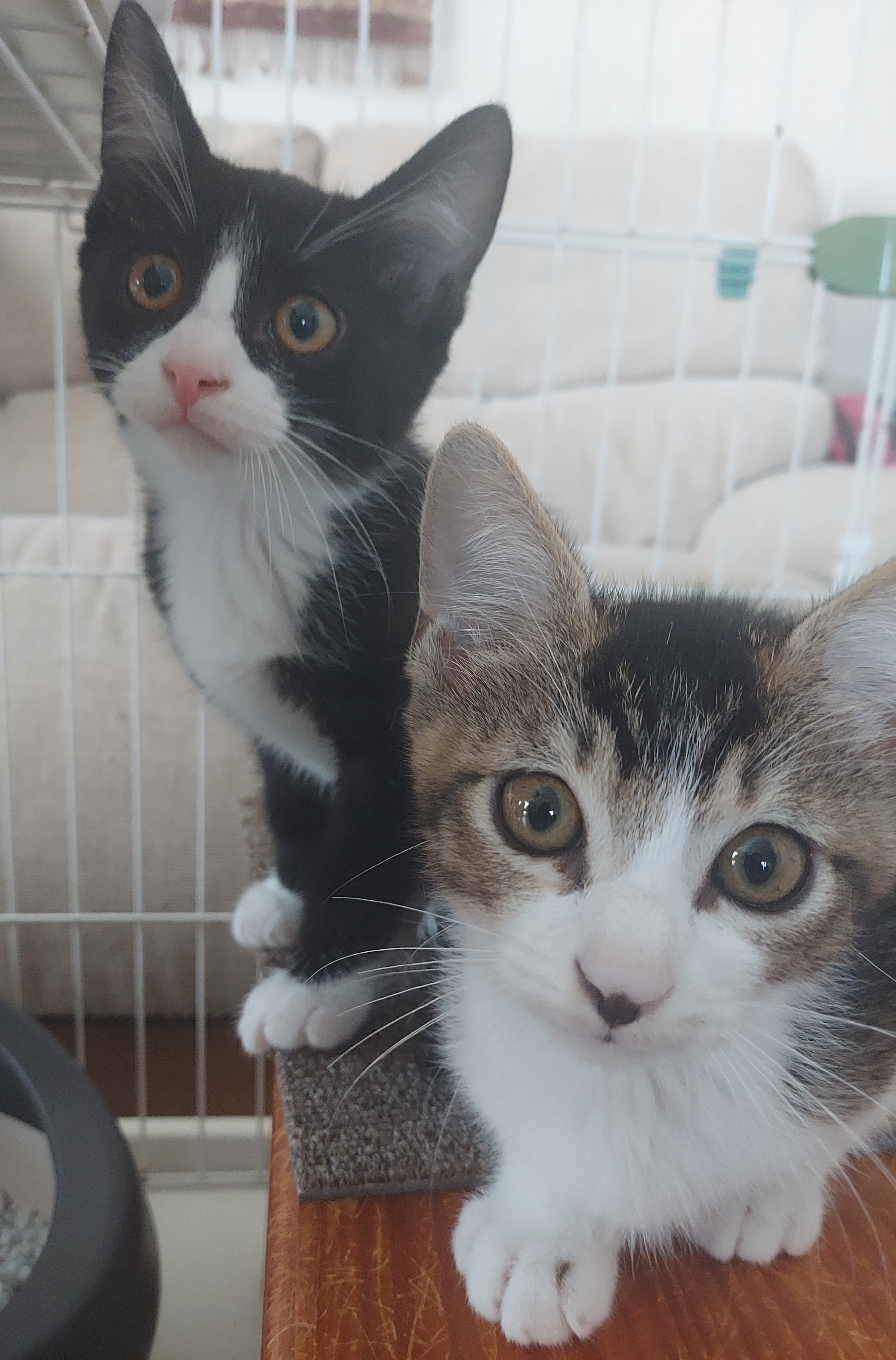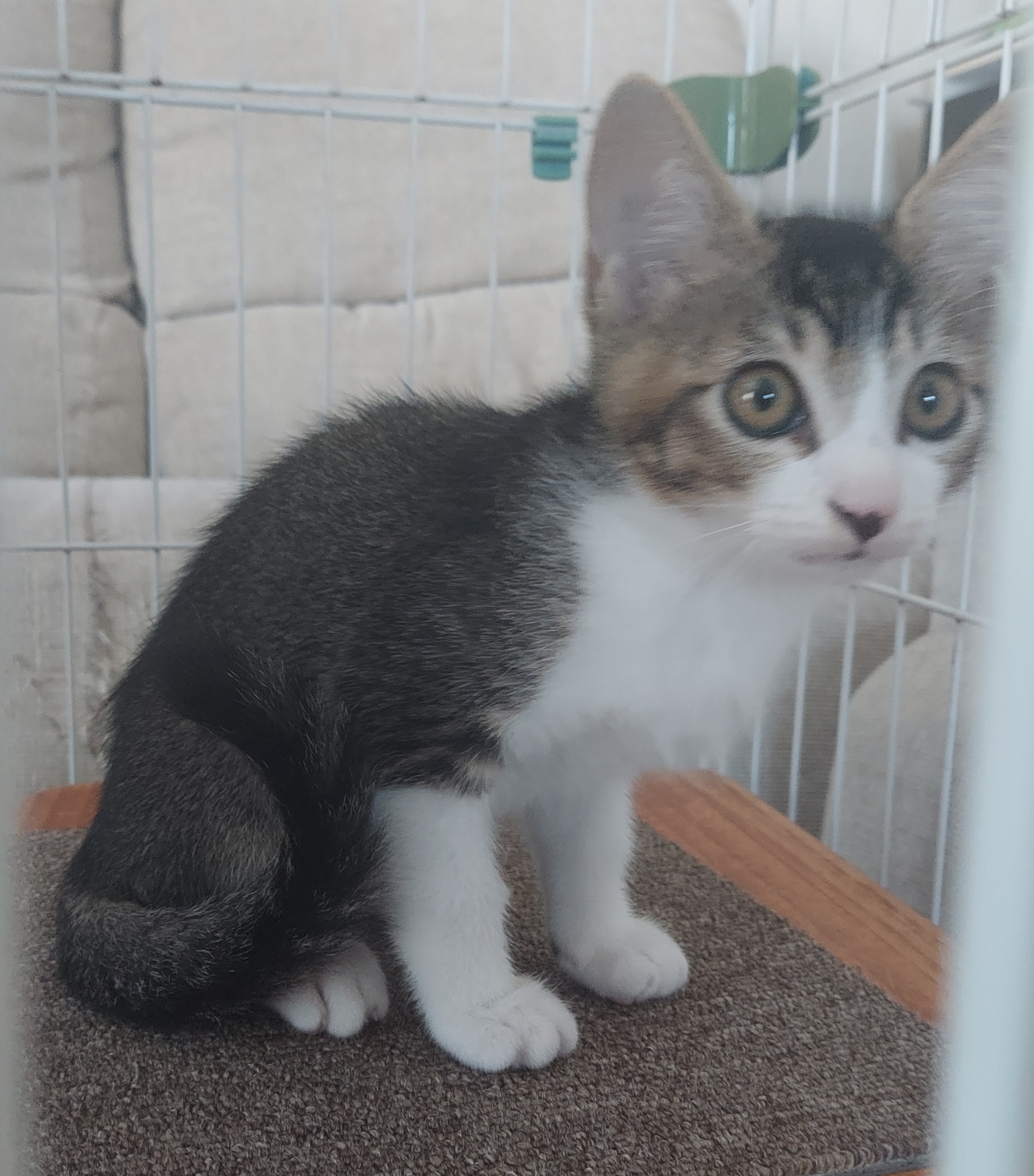 生後2ヶ月、未だ怖いもの知らずですからケージに移してから探検しながら、あっという間にオットくんがオシッコをして馴染んでいました!