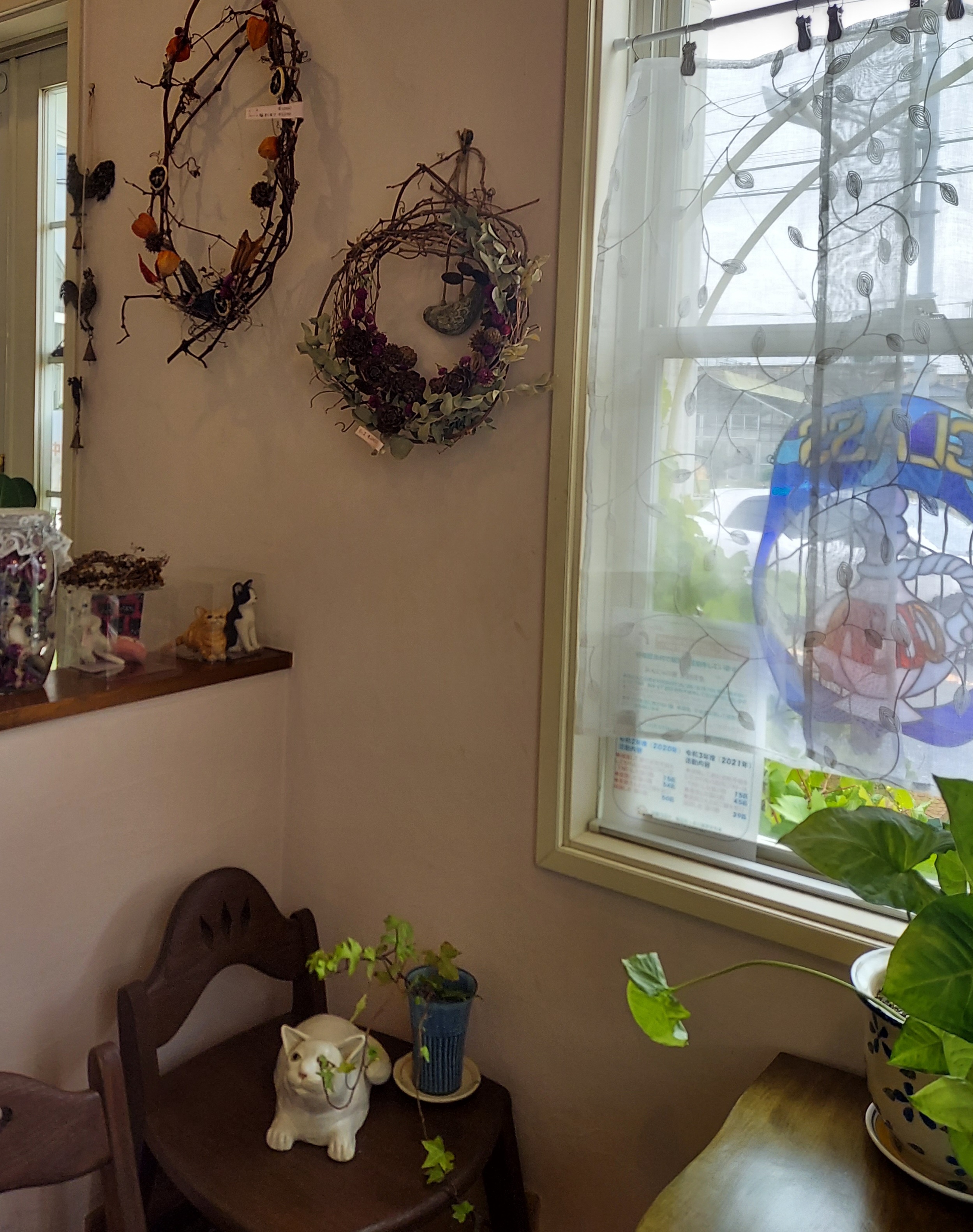 お店の中は猫と植物と雑貨が素敵に配置され癒しの空間となっています。