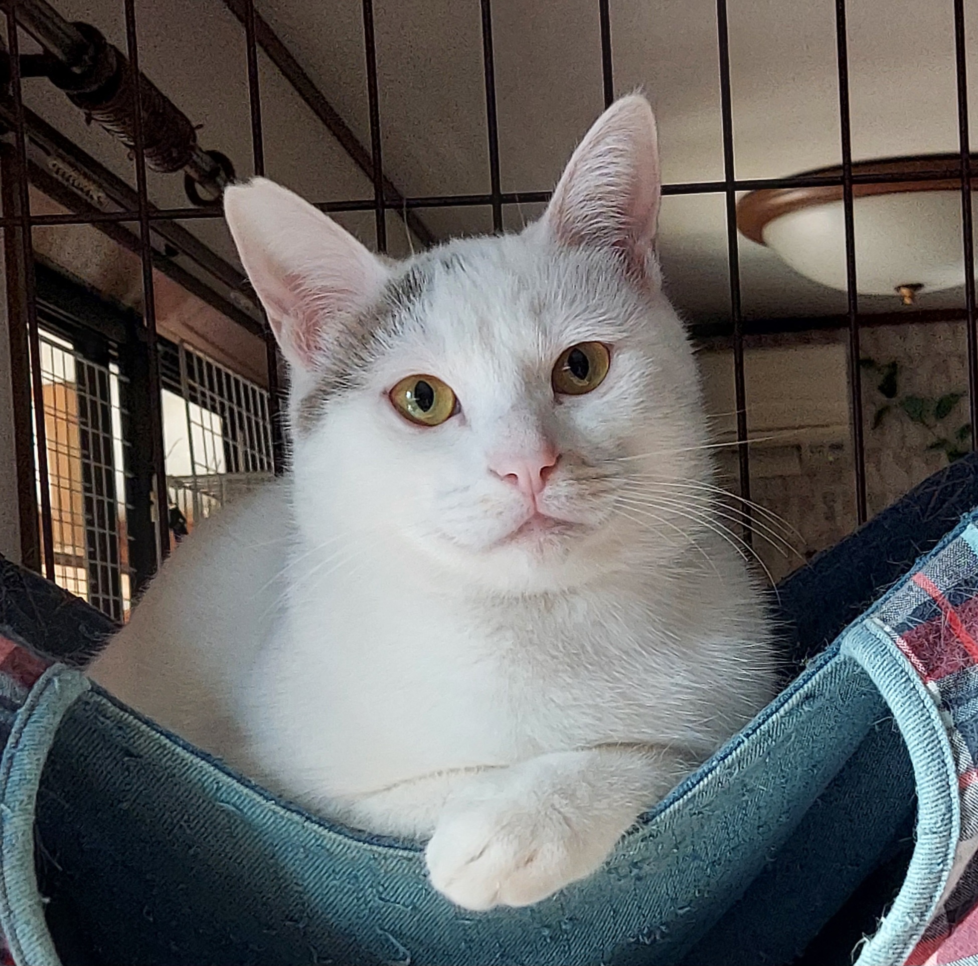 しっぽがケージ隙間からはみ出していたのでおさわりしちゃったら、あわてふためいてこもれるハンモックに逃げ込んでしまいました。