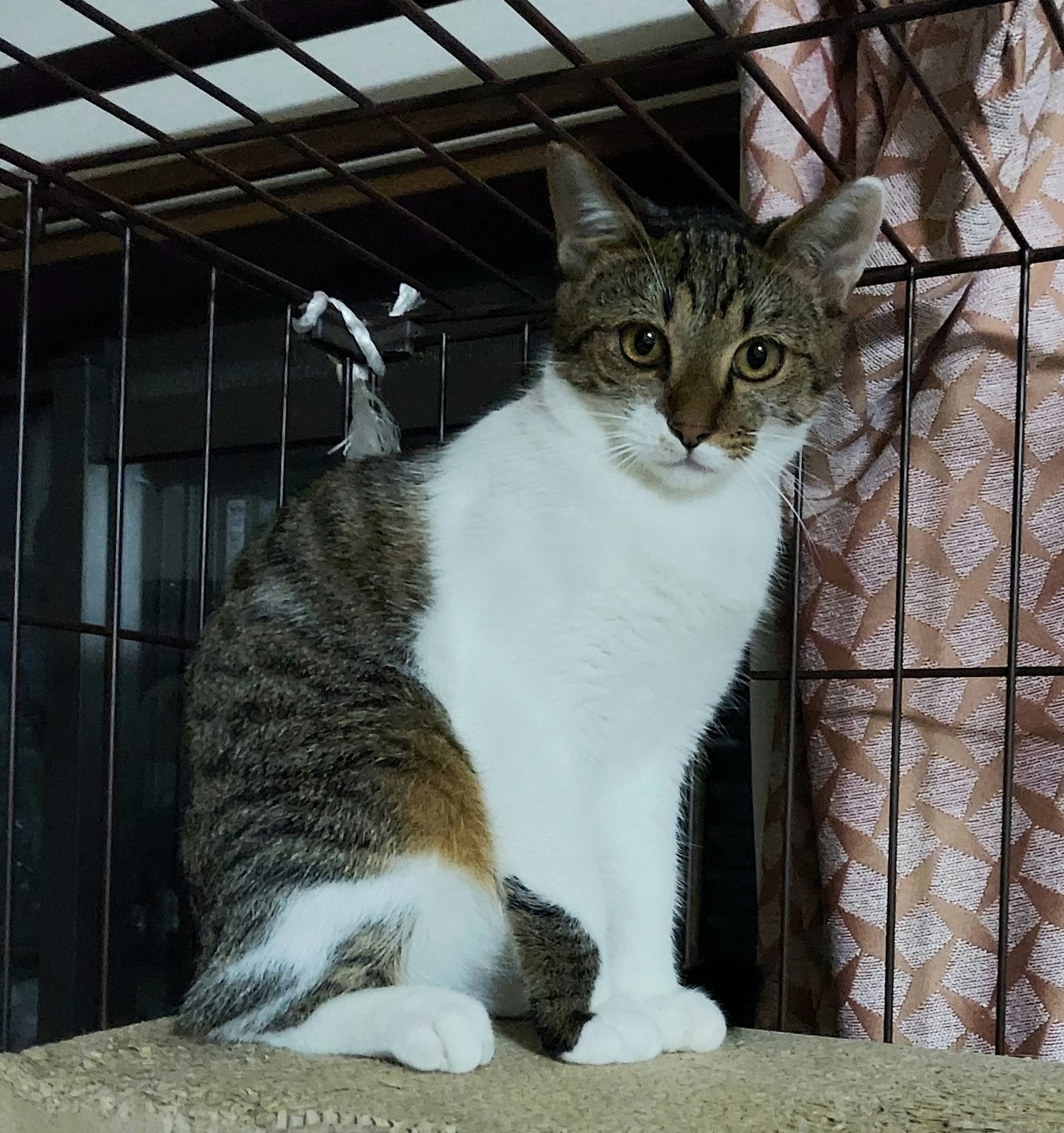 ケージの中でイエネコ修行です。
