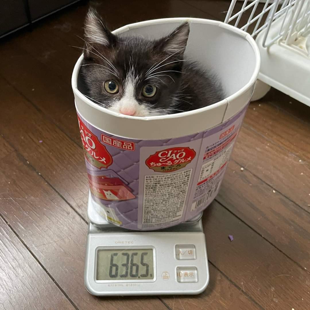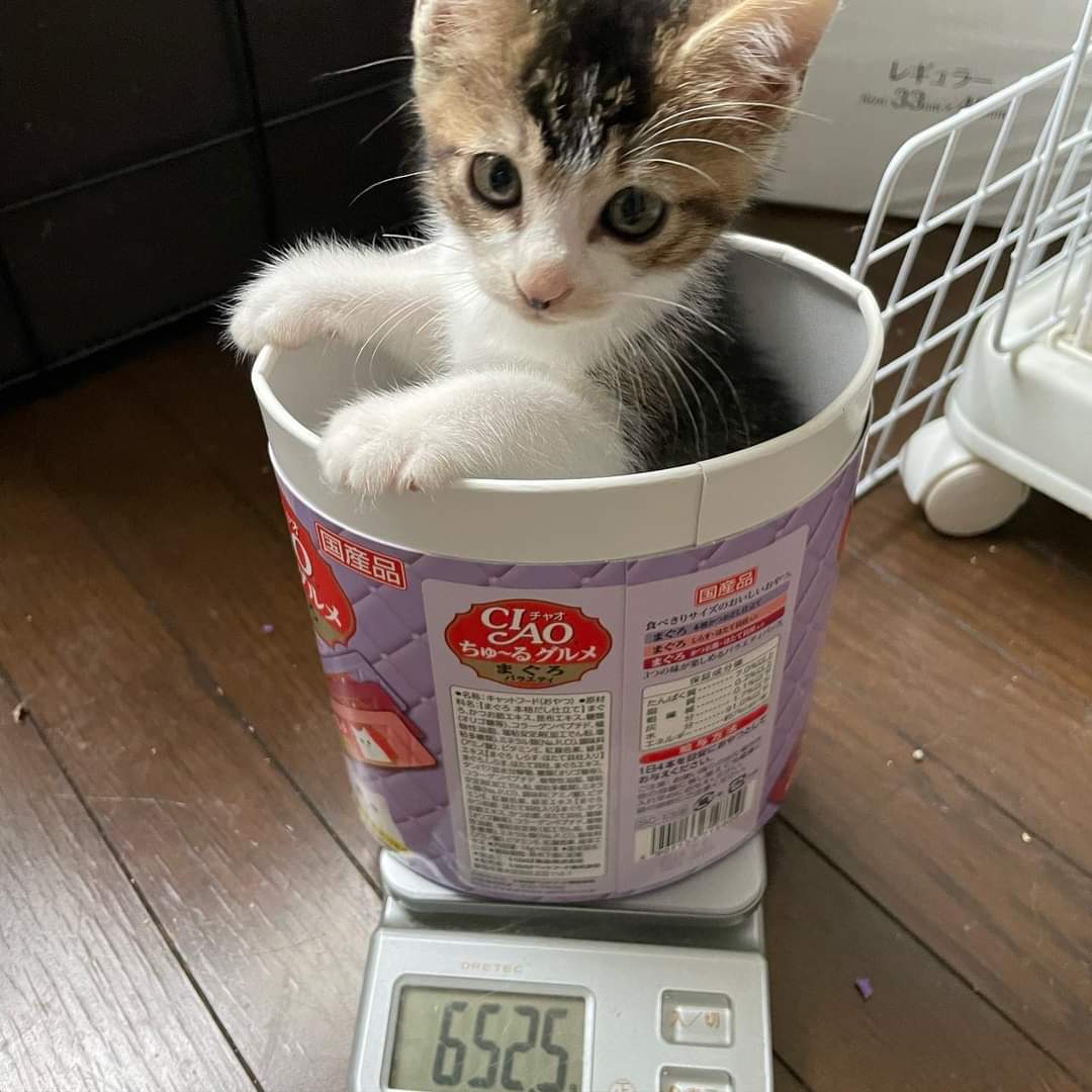 餌やりさんが1週間ほど前に捕まえて室内に入れました。