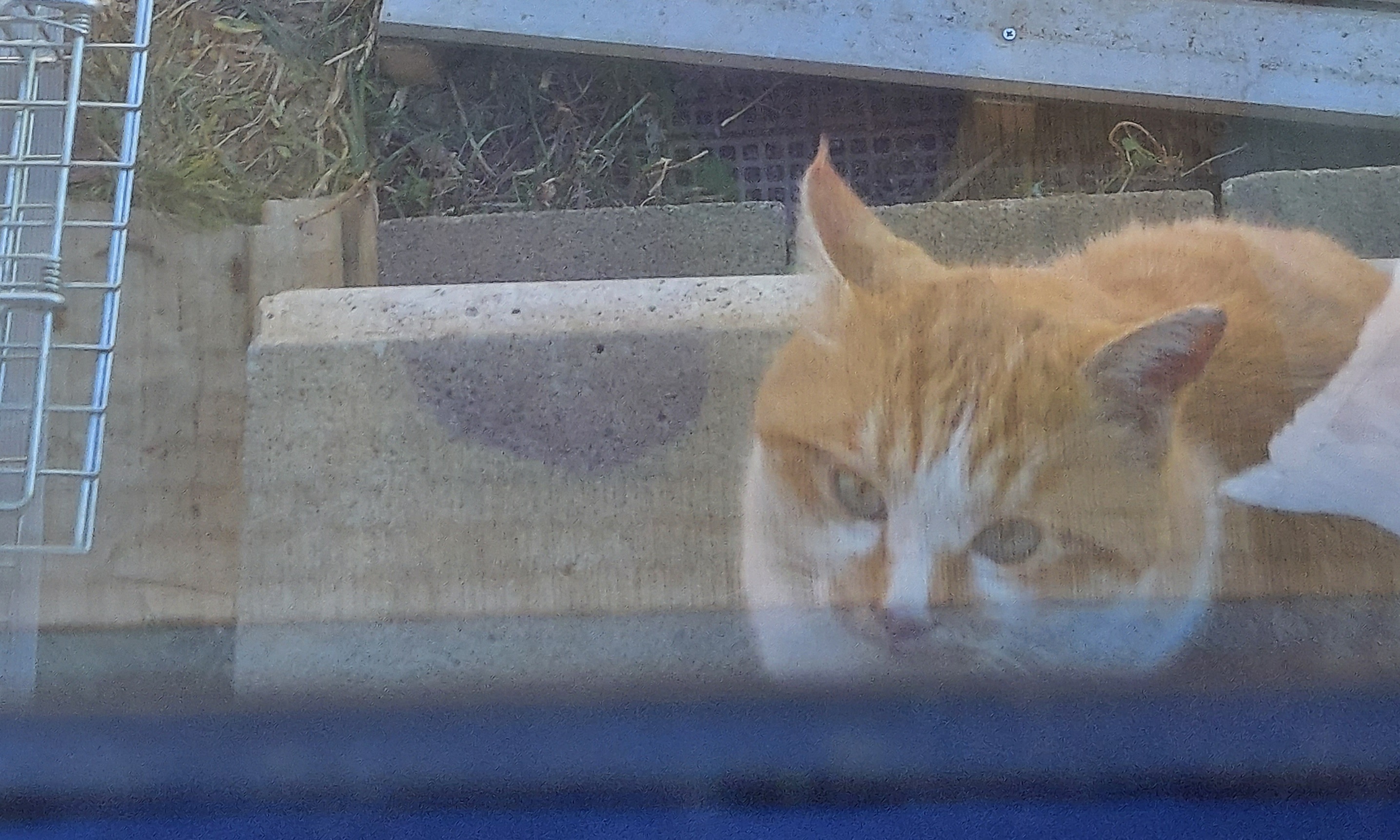 4月に顔面負傷で保護して去勢したこぶしくんも向こうの家の庭に現れた子でした。