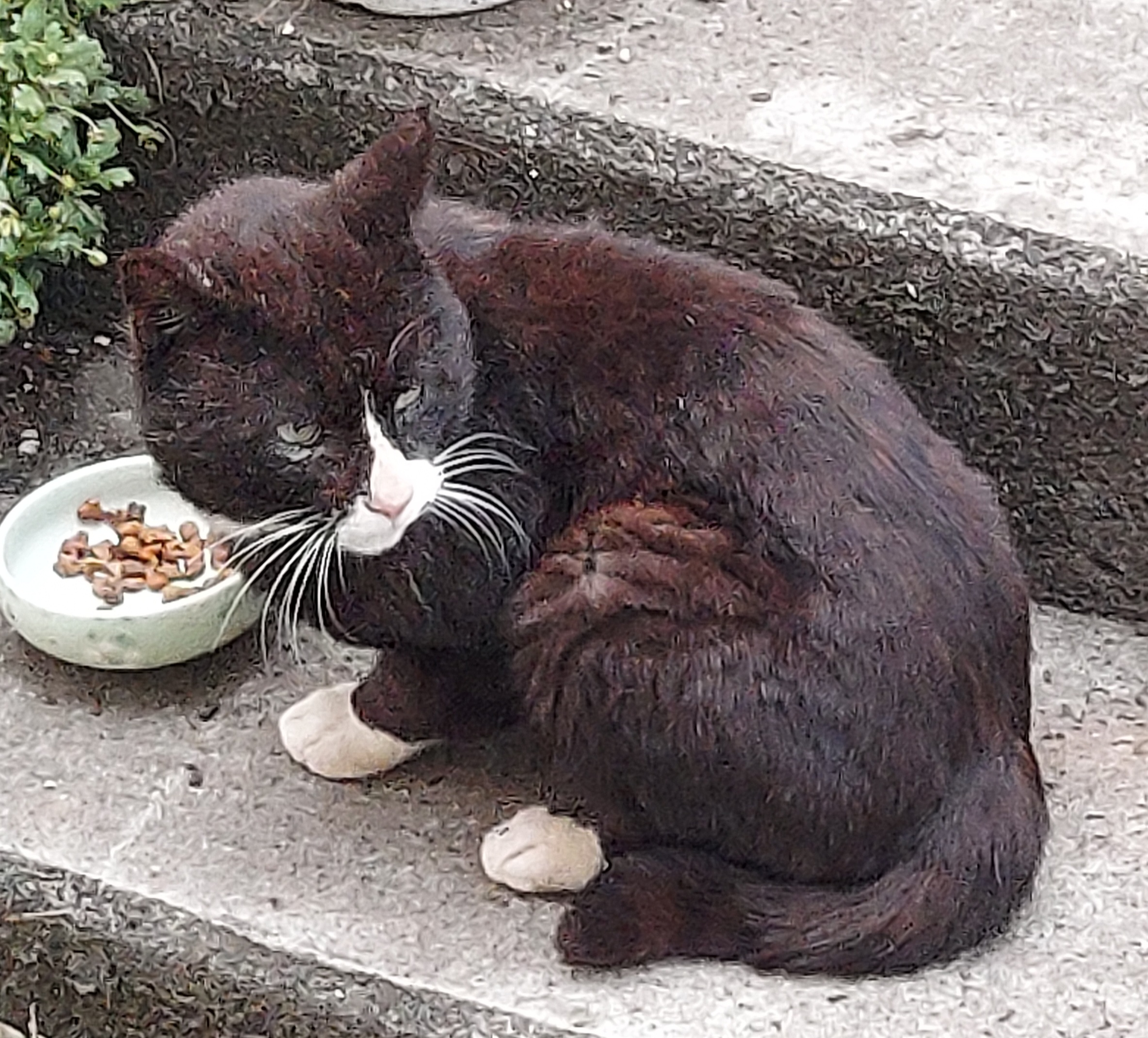 数ヶ月前から裏庭に来るようになったハチワレくん。