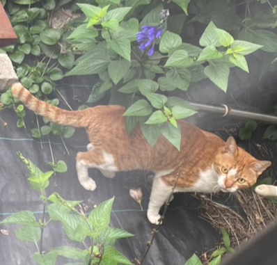 4月に顔面負傷で保護して去勢したこぶしくんも向こうの家の庭に現れた子でした。